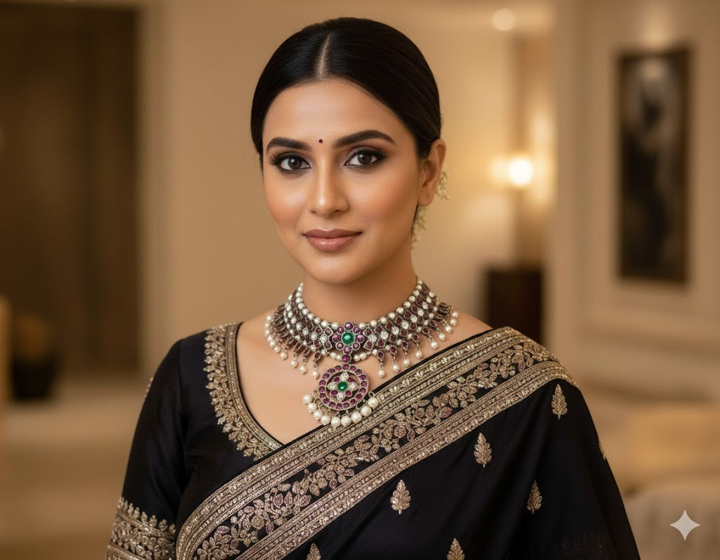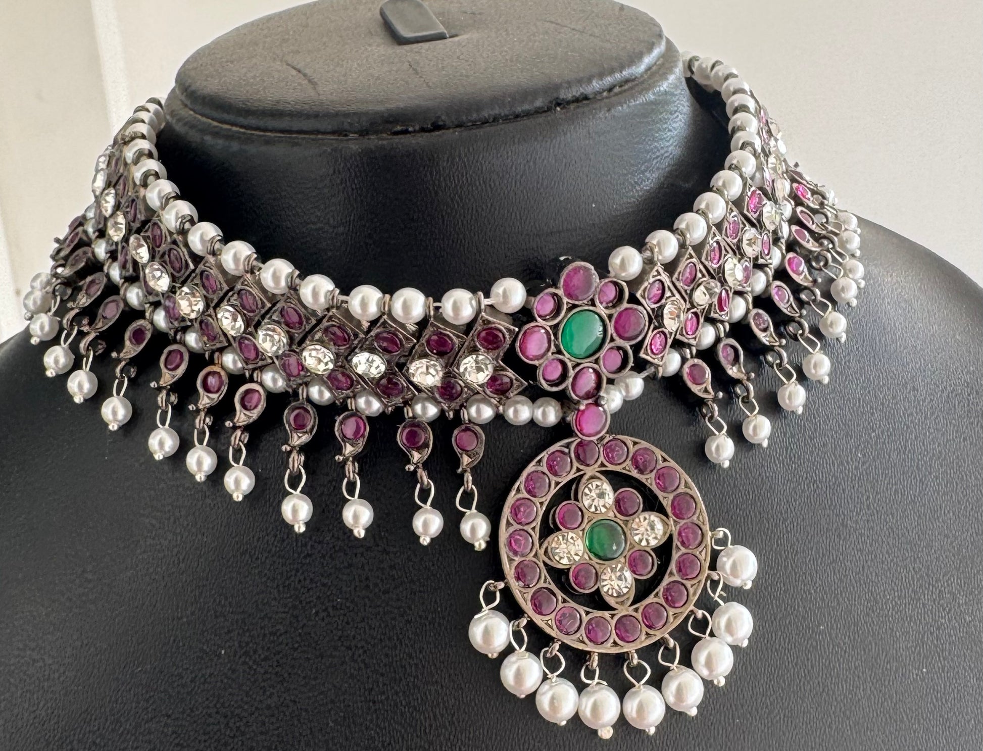Black finish precious kemp pearl attigai/necklace dj-51032