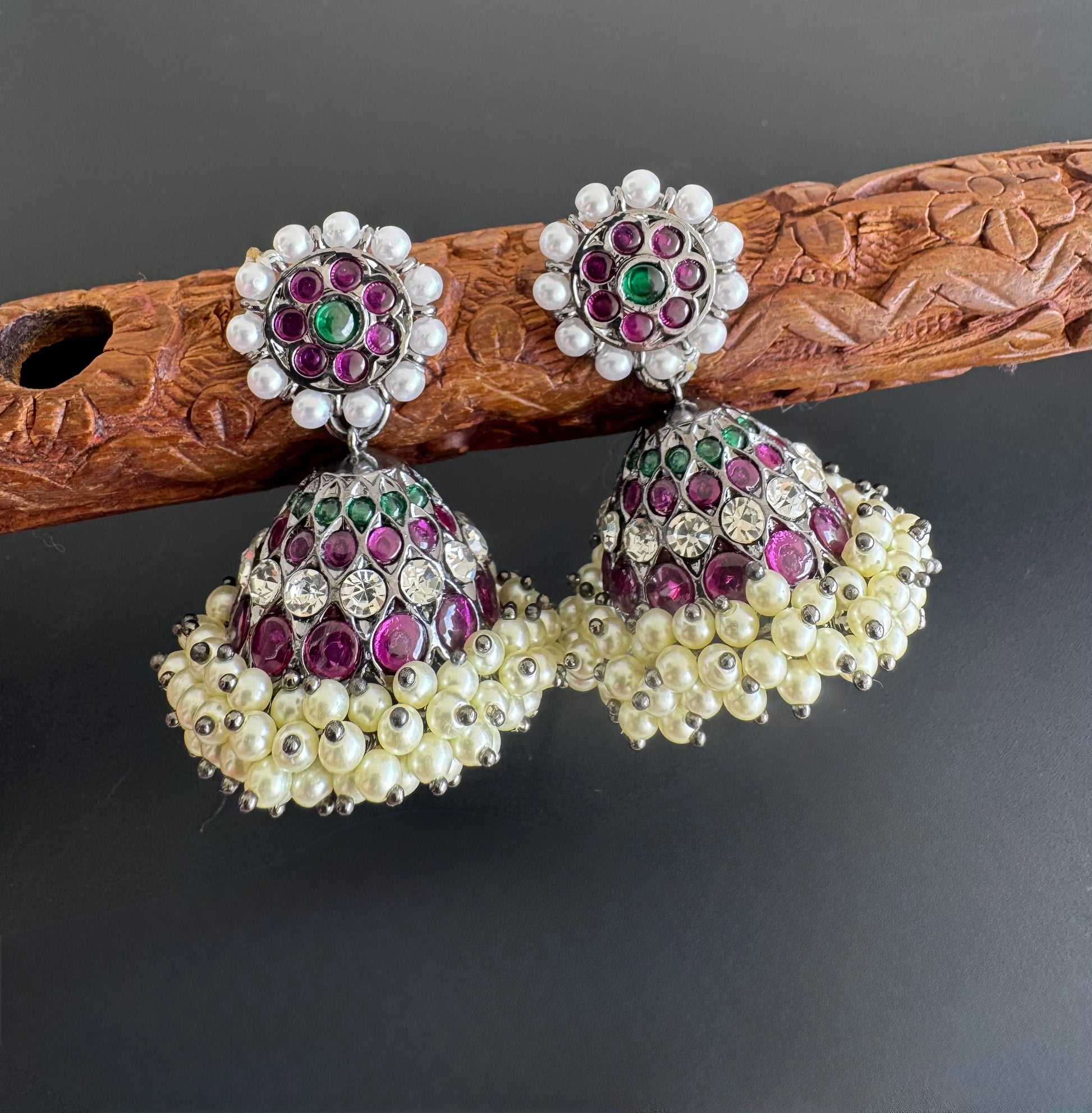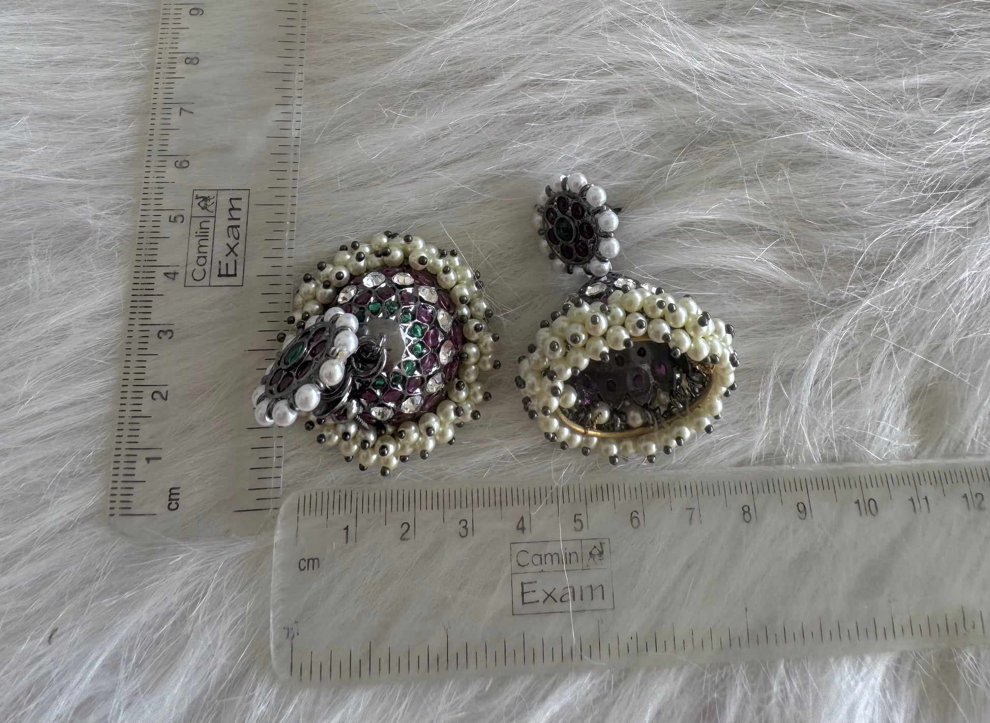 Black finish precious kemp-green pearl big jhumkka Dj-51174