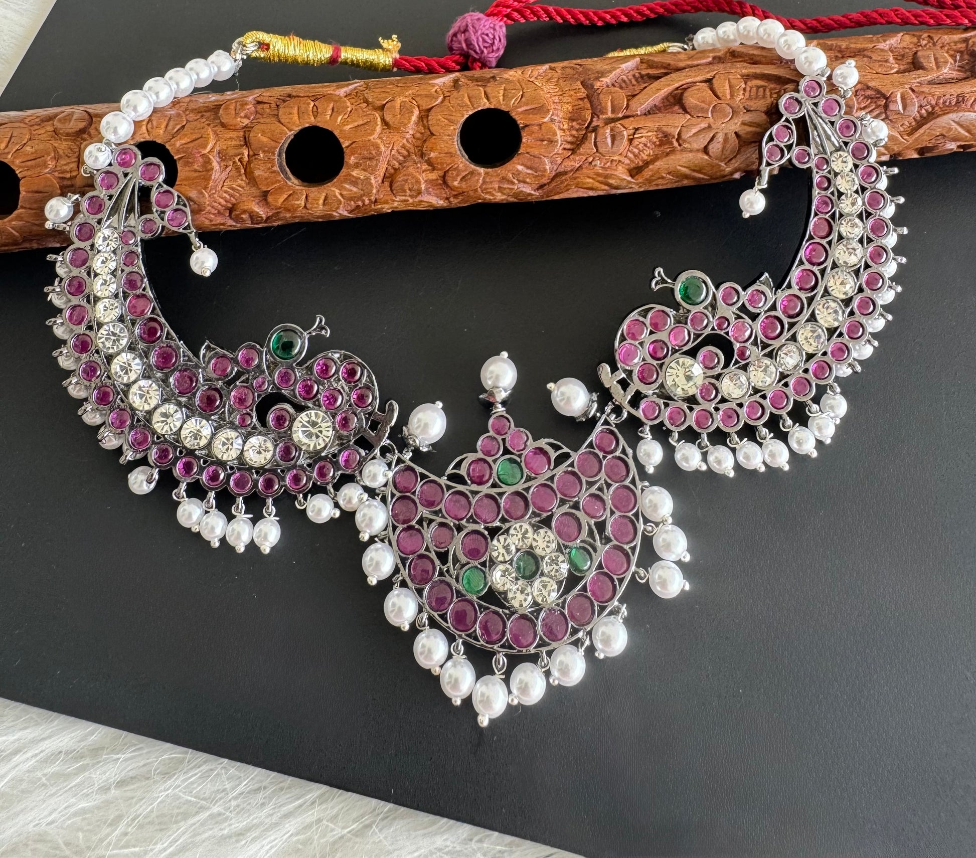 Black finish precious kemp pearl moon peacock necklace Dj-51171