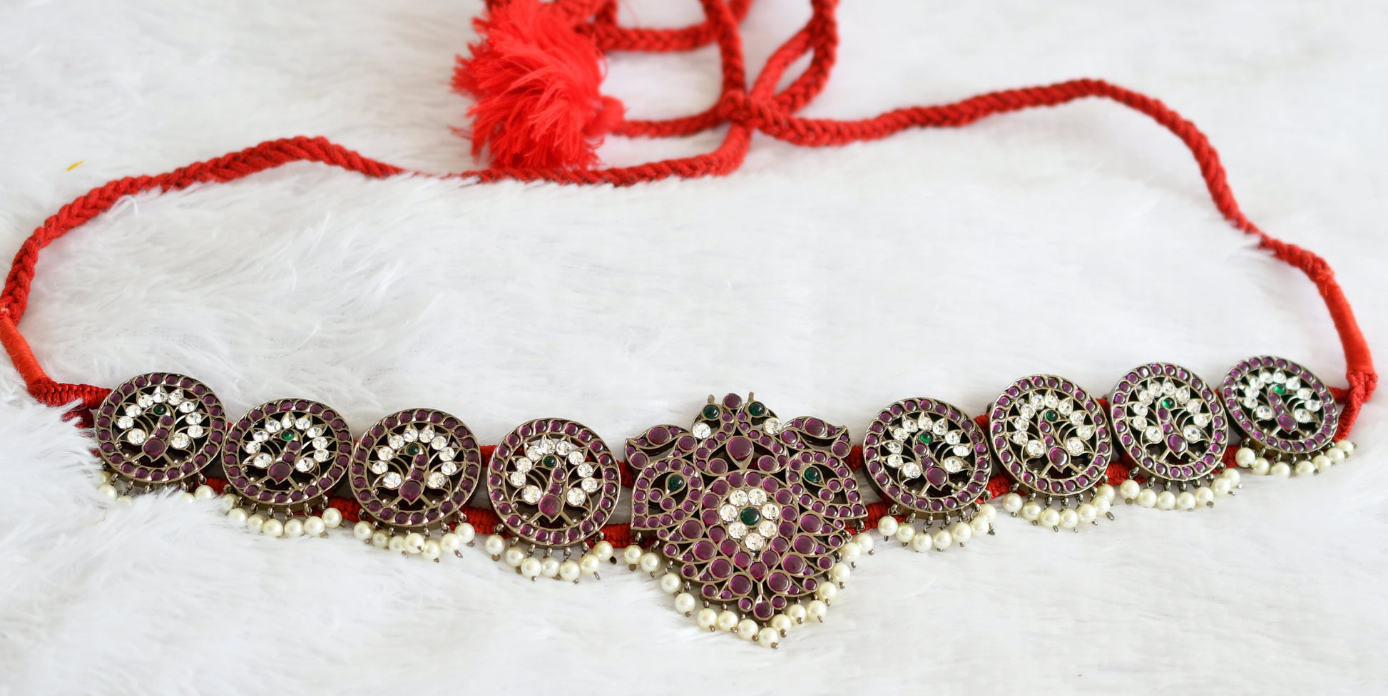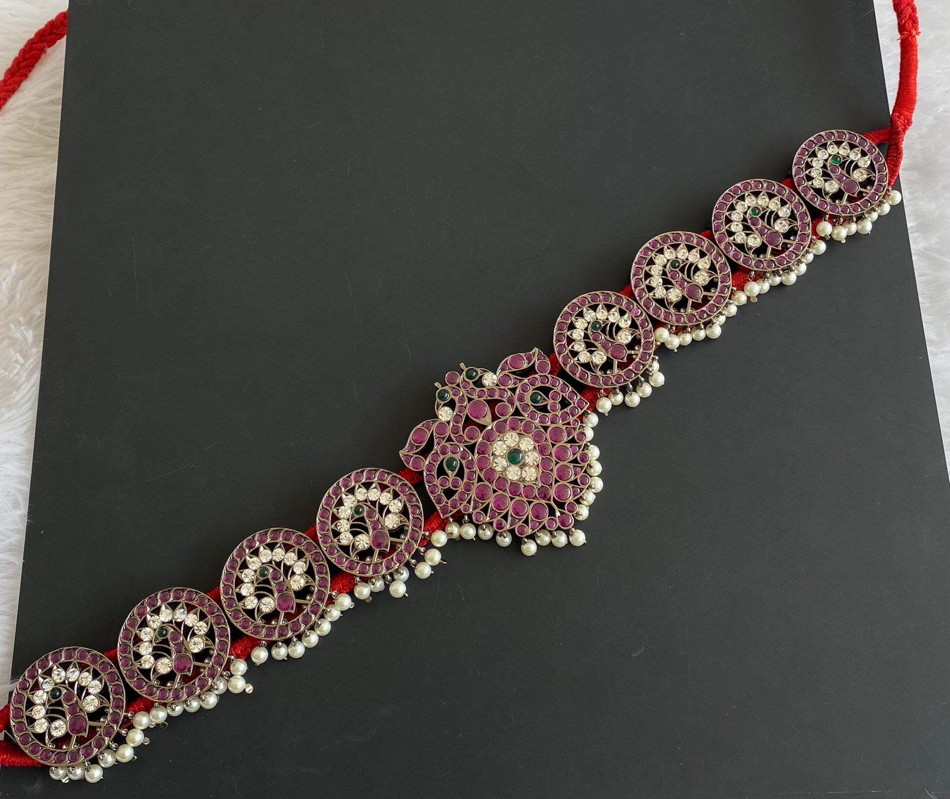 Black finish precious kemp-green-white pearl peacock waist band dj-50774