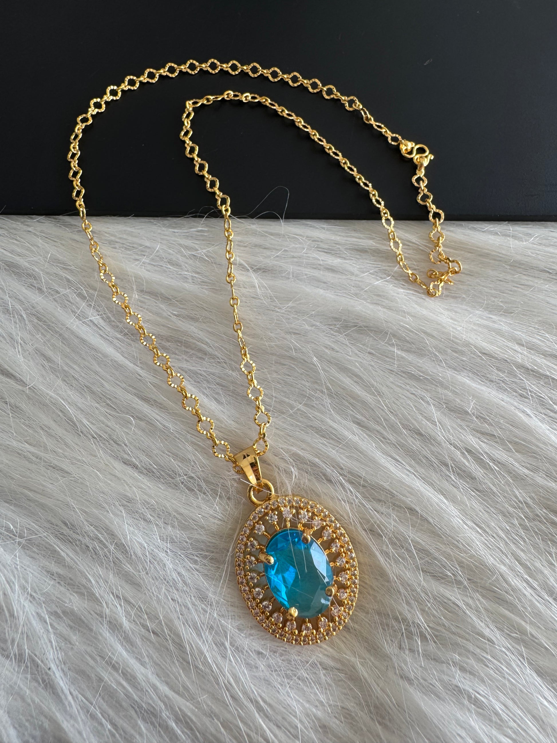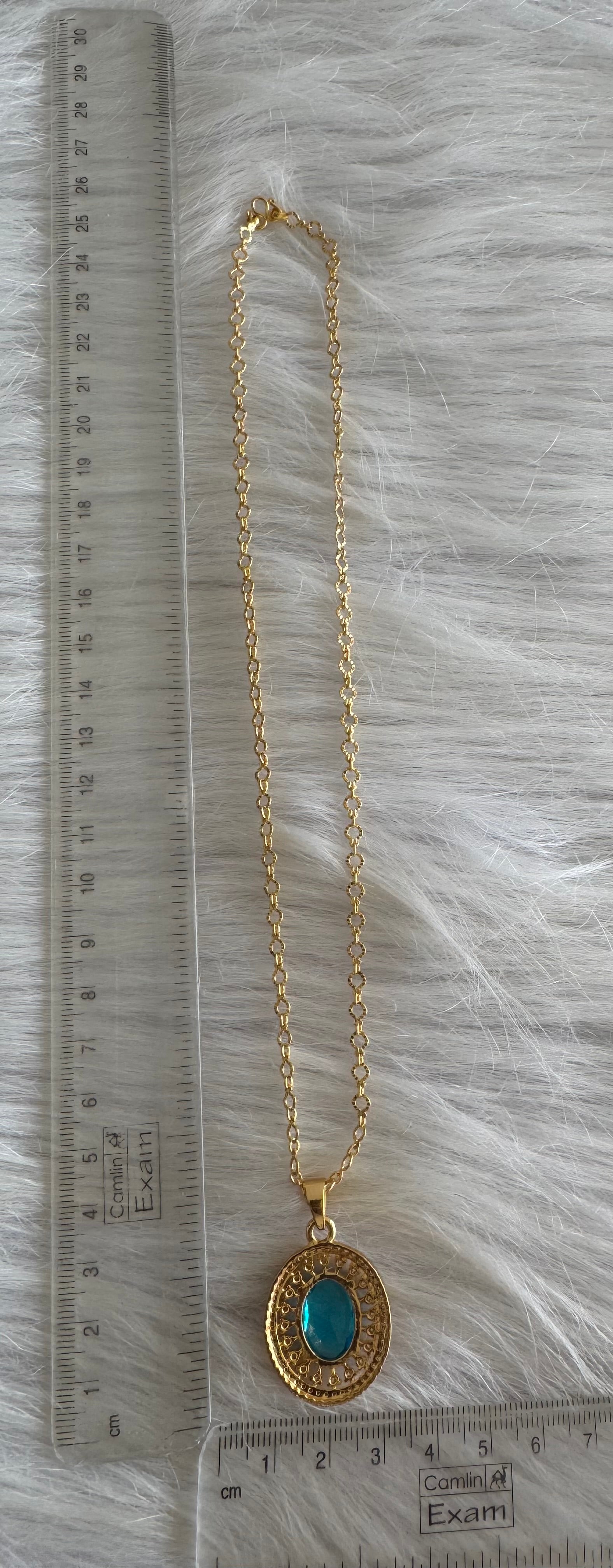 Gold tone 18 inches chain with french blue oval stone pendant dj-51272
