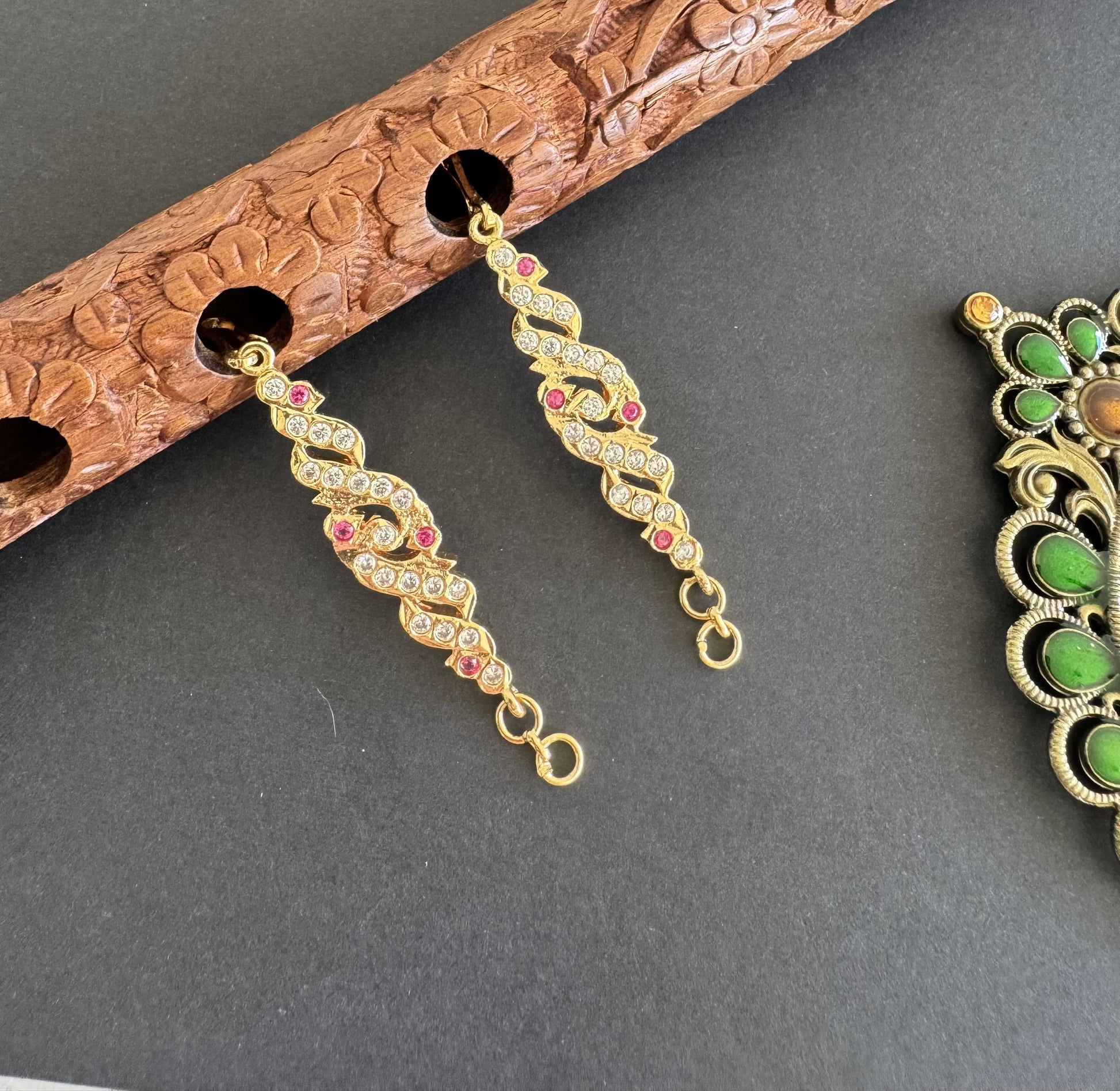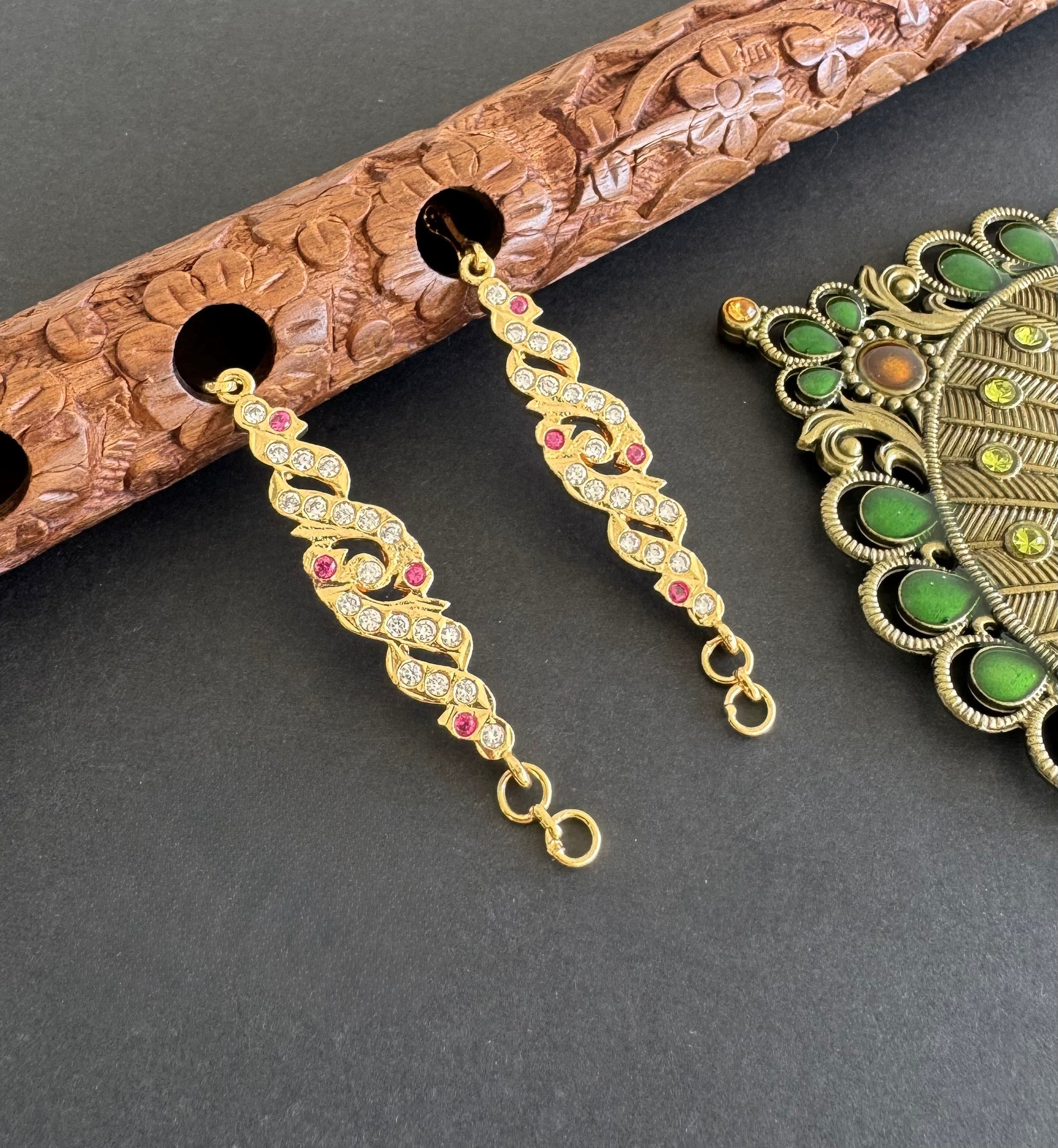 Gold tone AD pink white peacock ear side chain dj-52050