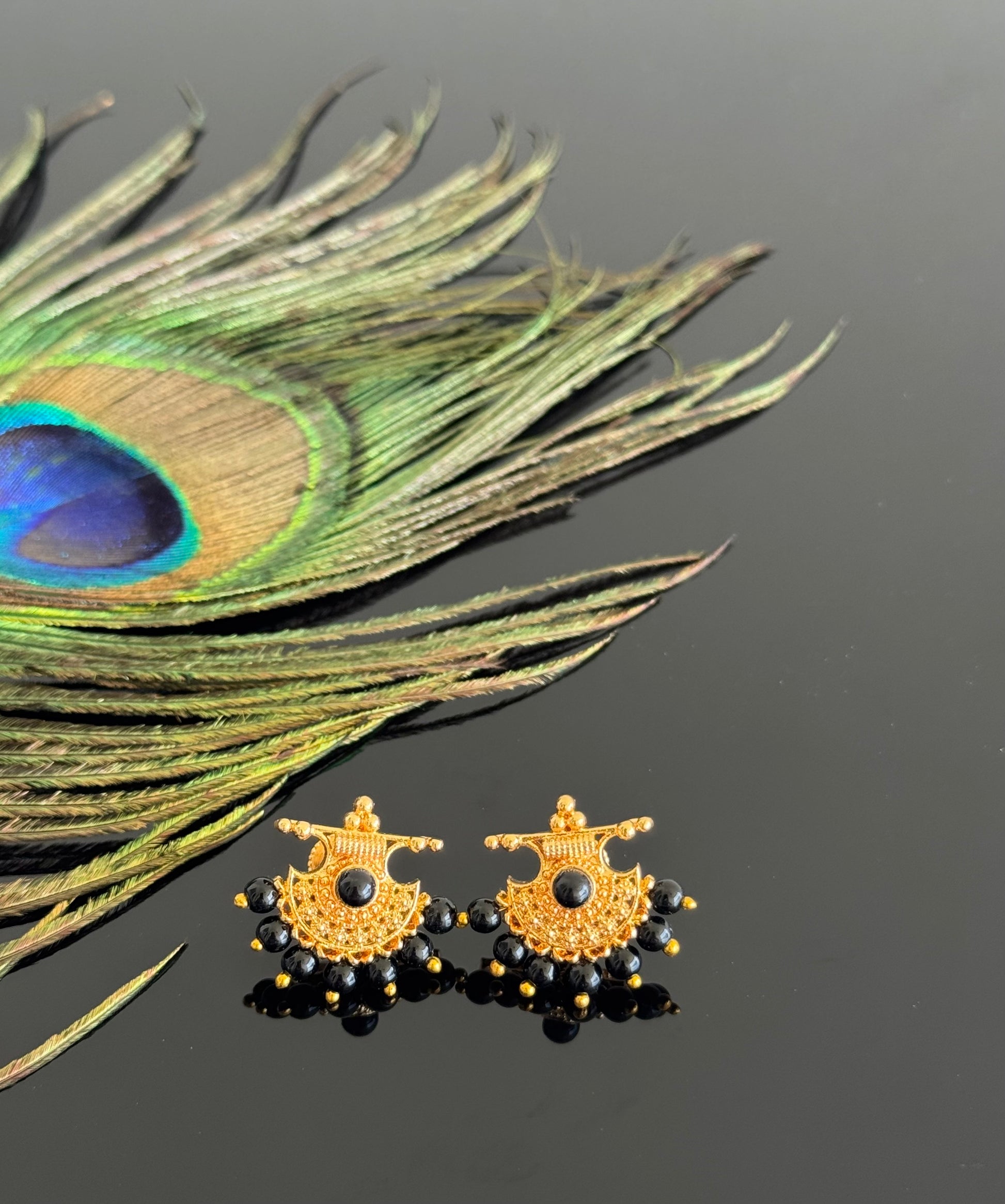 Gold tone black beaded stud/earrings dj-51604