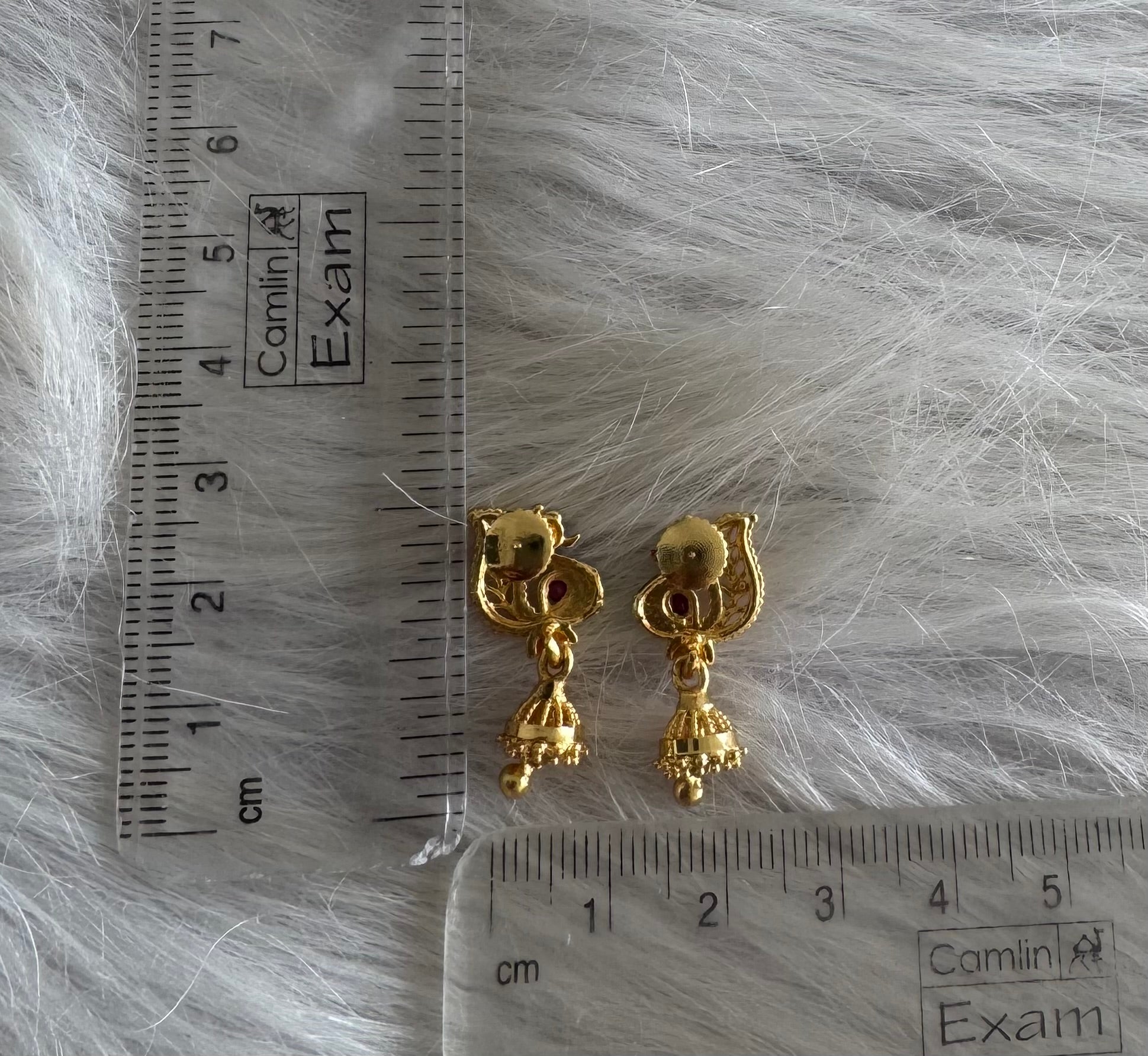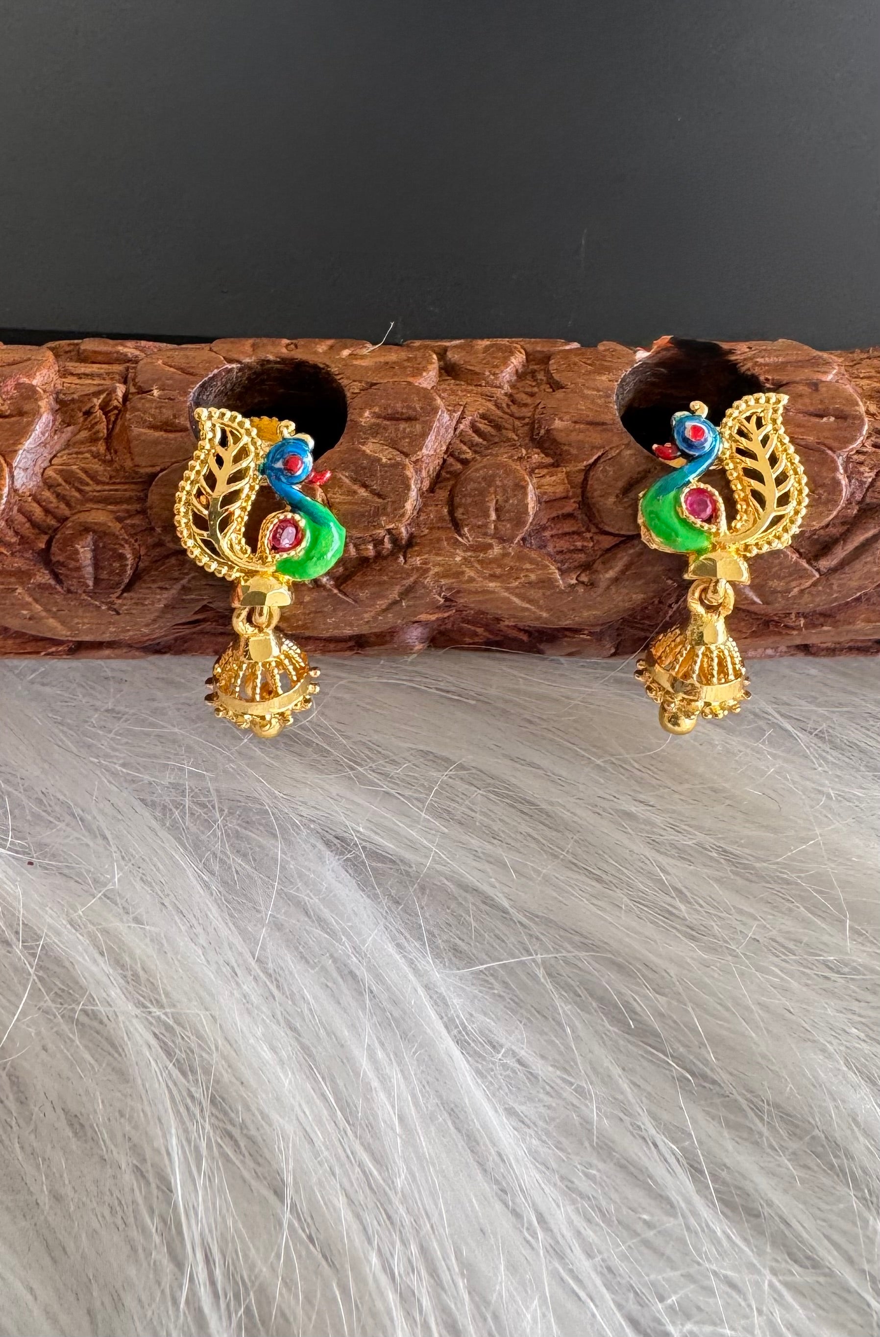 Gold tone blue-green small enamel peacock jhumkka dj-51289