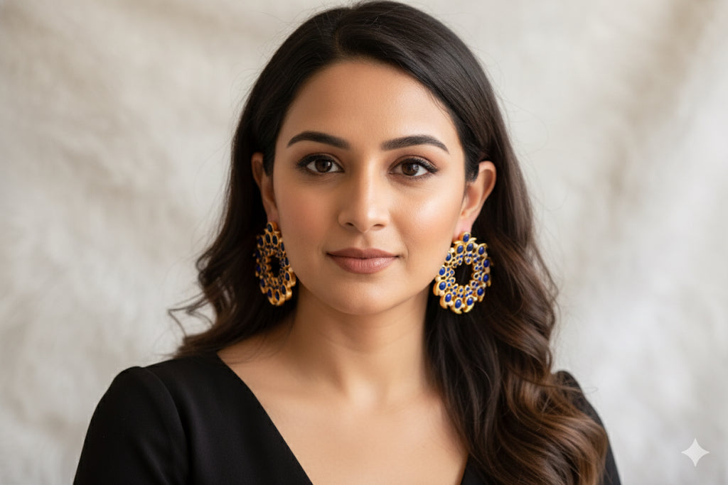 Gold tone blue pearl mango big earrings dj-52359