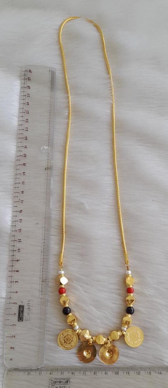 Gold tone coral-black bead lakshmi coin ginni bottu mangalyam dj-42652