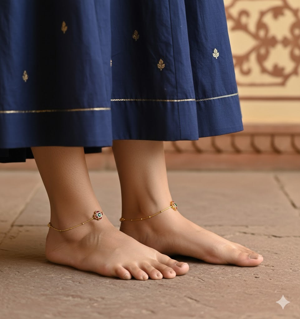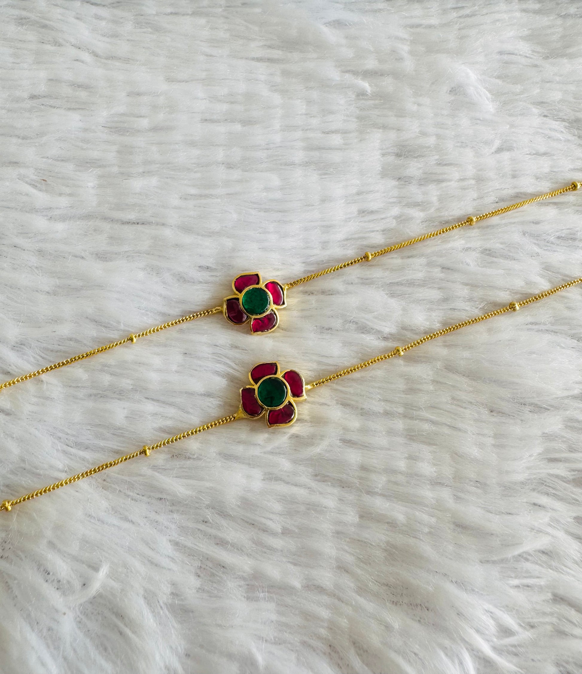 Gold tone pink-green flower kundan jadau anklets dj-51412