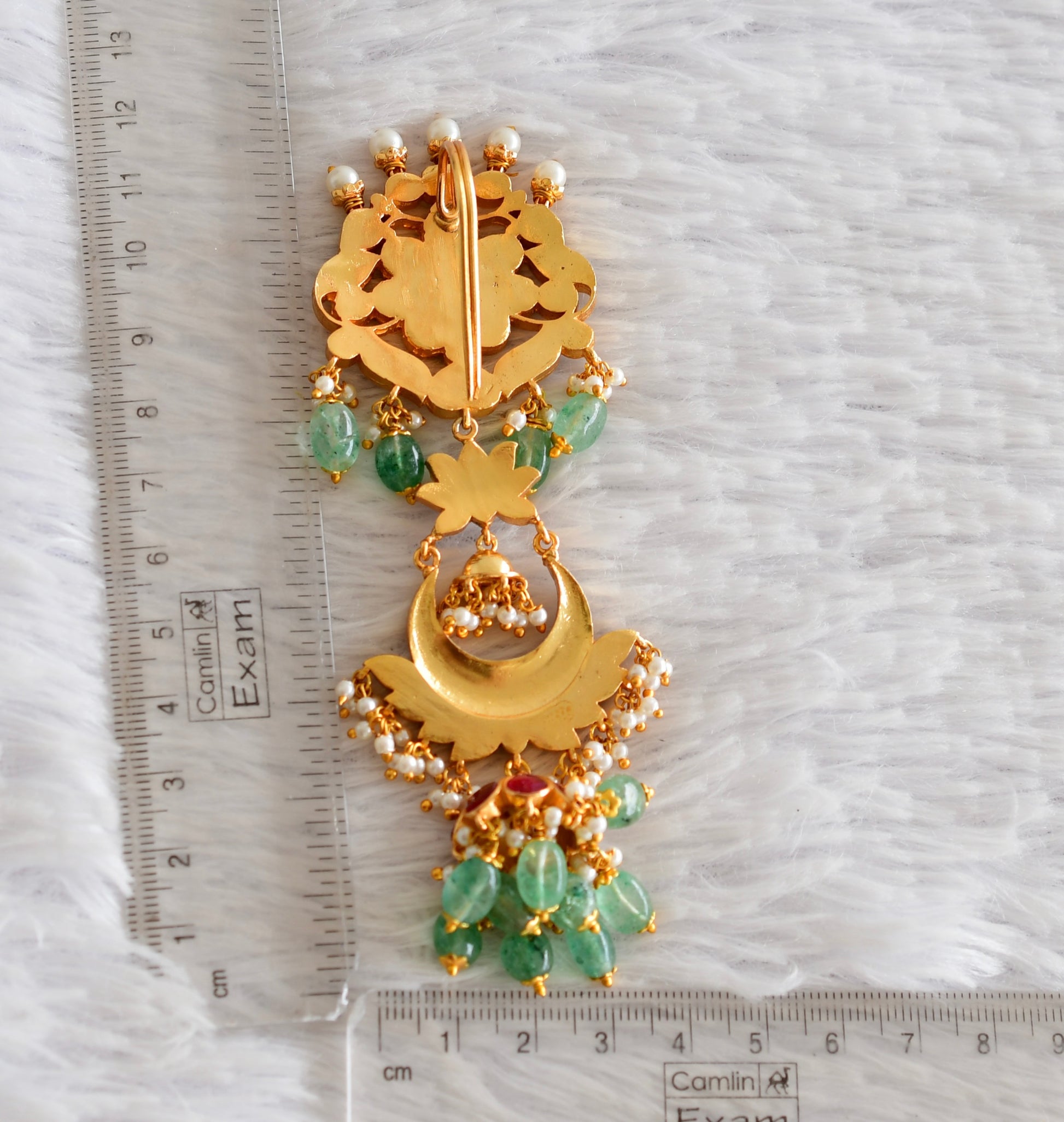 Gold tone pink-green kundan jadau lotus hair jewel dj-52376