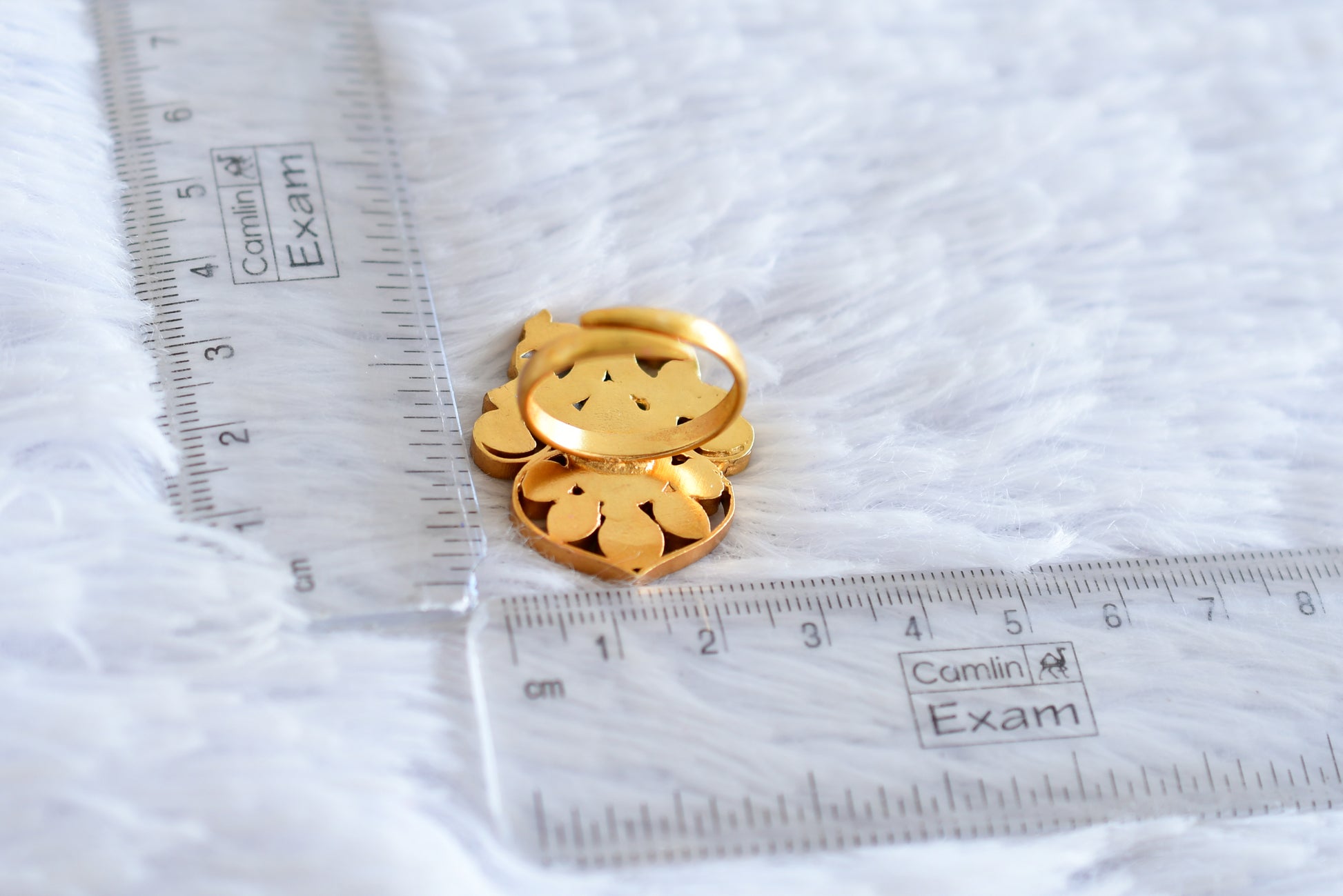 Gold tone pink-green-pearl kundan jadau peacock finger ring dj-52368