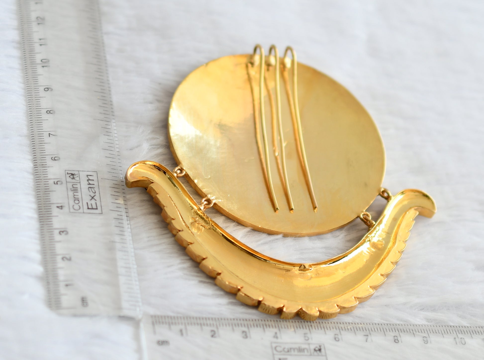Gold tone pink-green-white kundan jadau big round flower pendant/hair jwell dj-50732