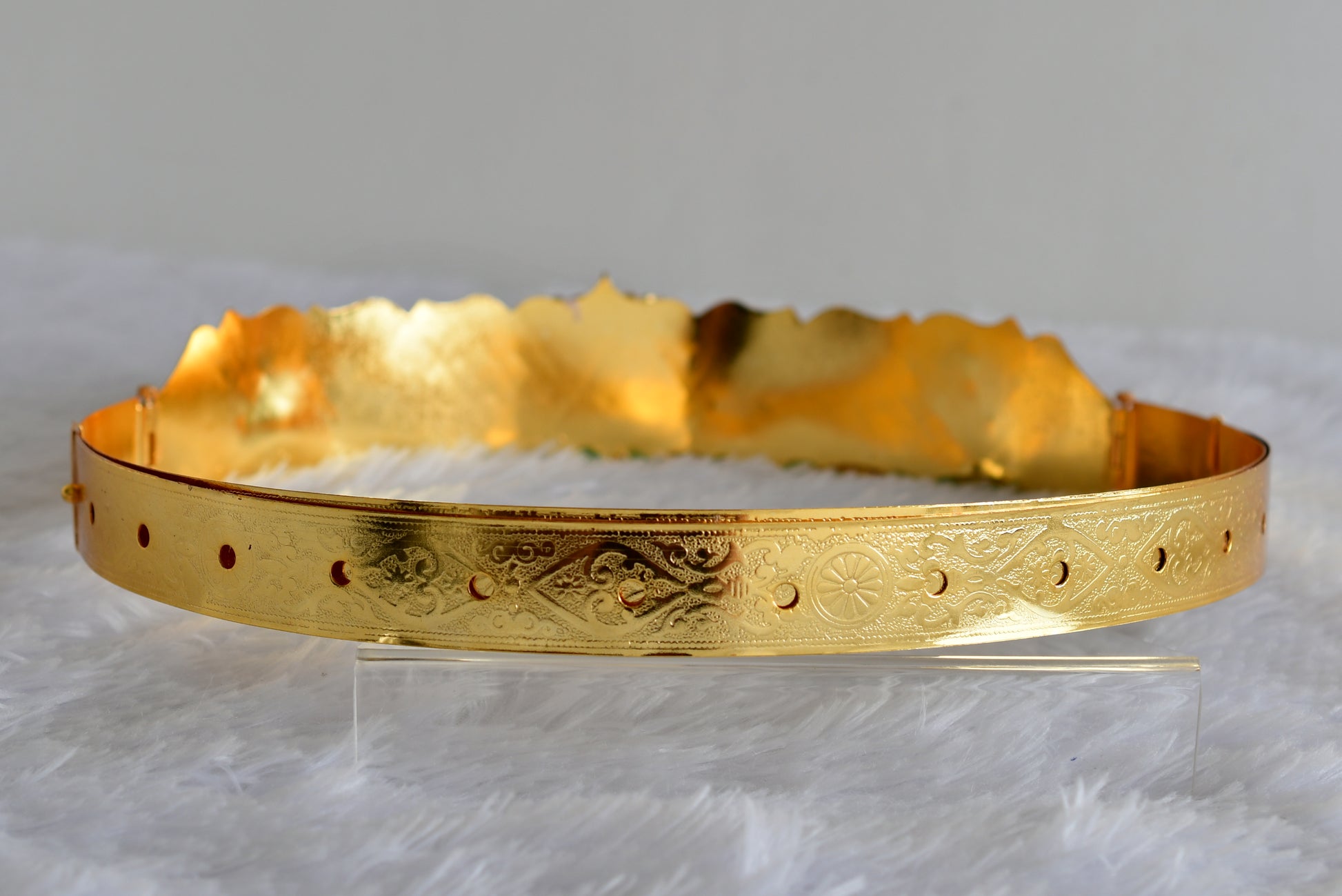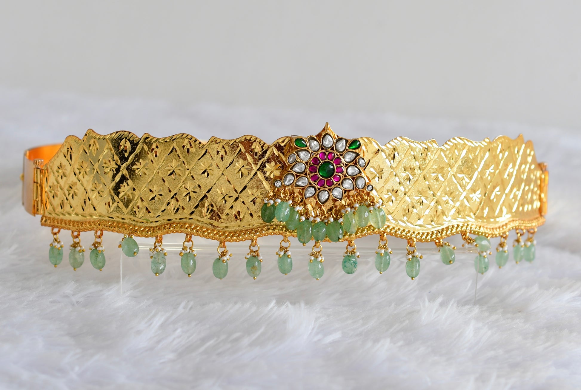 Gold tone pink-green-white kundan jadau flower waist band dj-52184