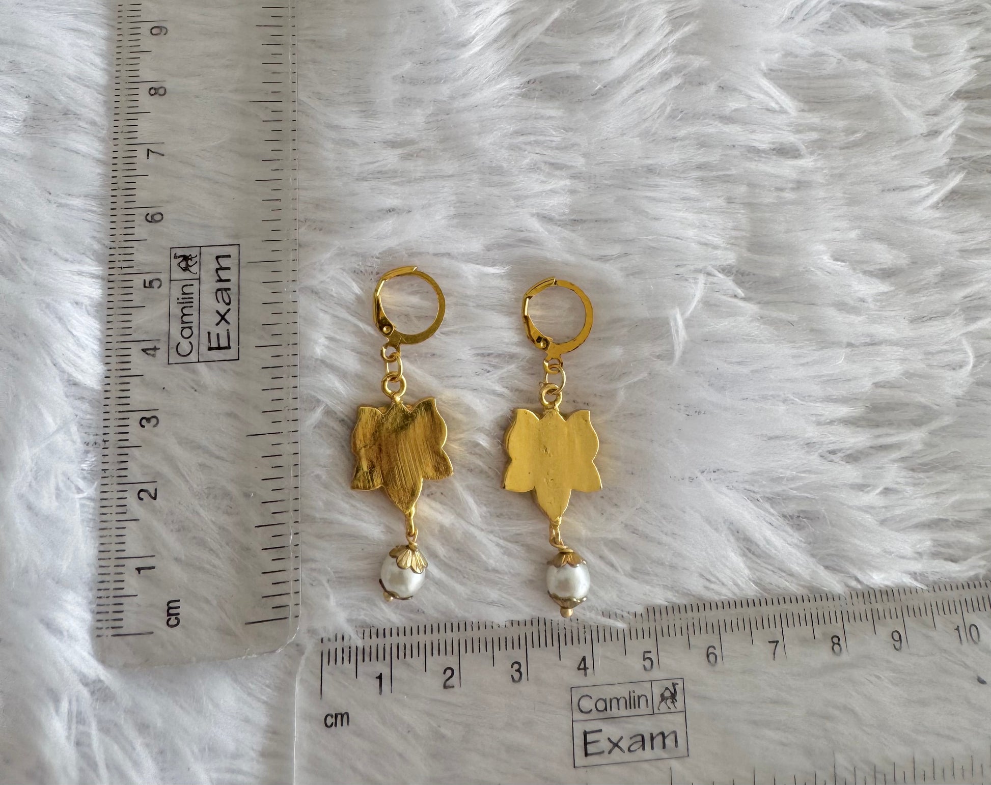 Gold tone pink-green-white kundan jadau lotus hook earrings dj-51561
