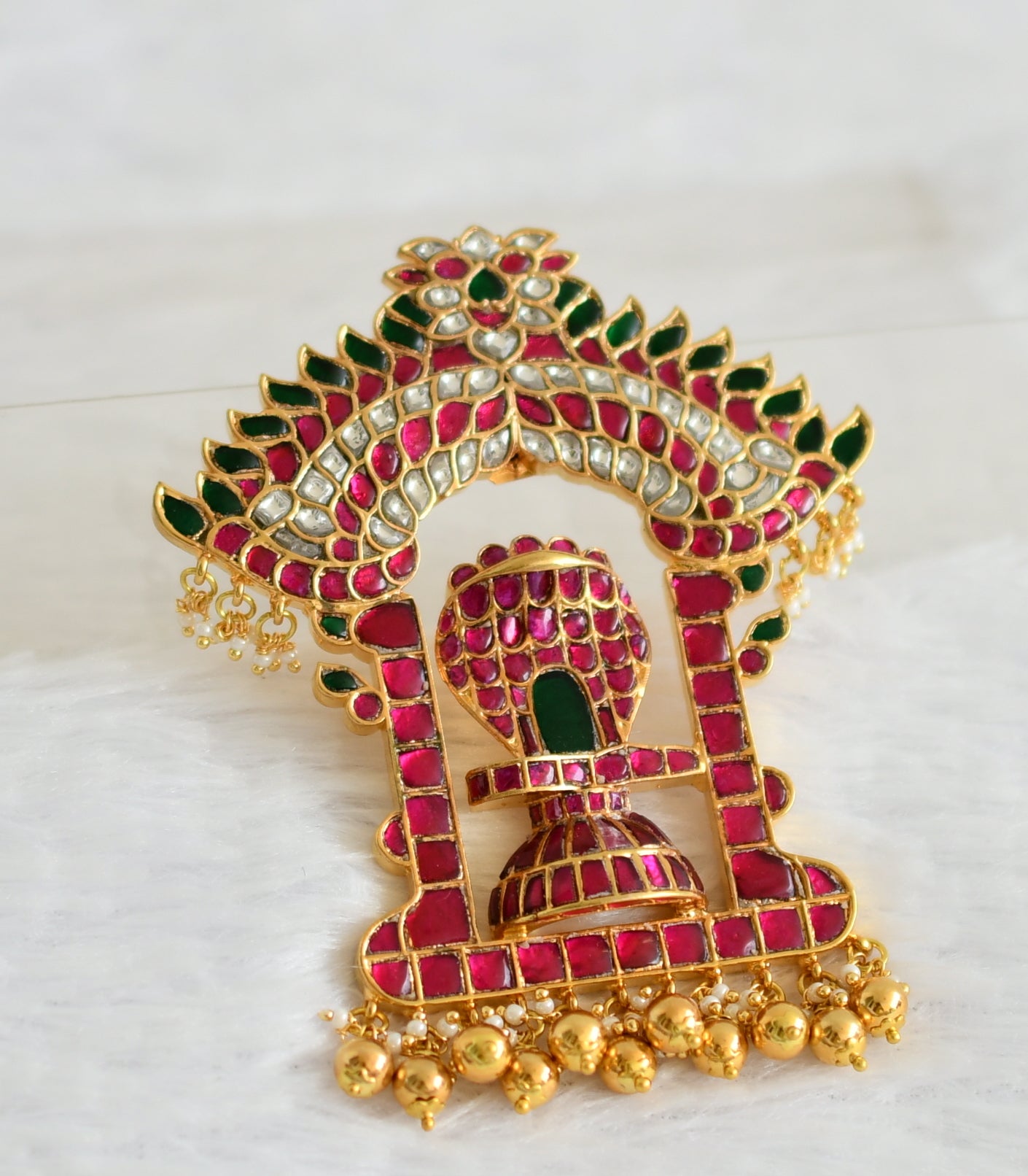 Gold tone pink-green-white kundan jadau sri lingeshwar pendant dj-50673