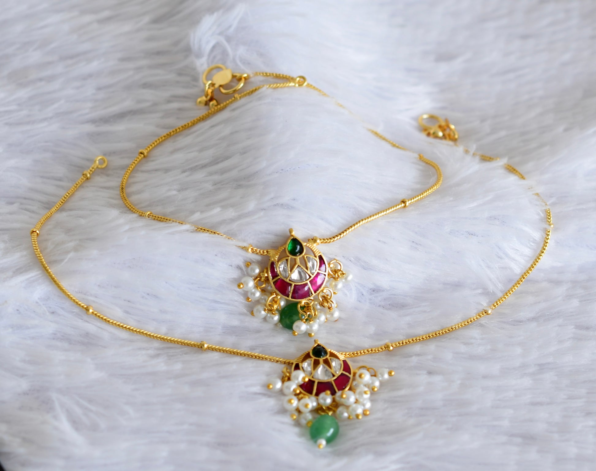Gold tone pink-white-green kundan jadau anklets dj-52404