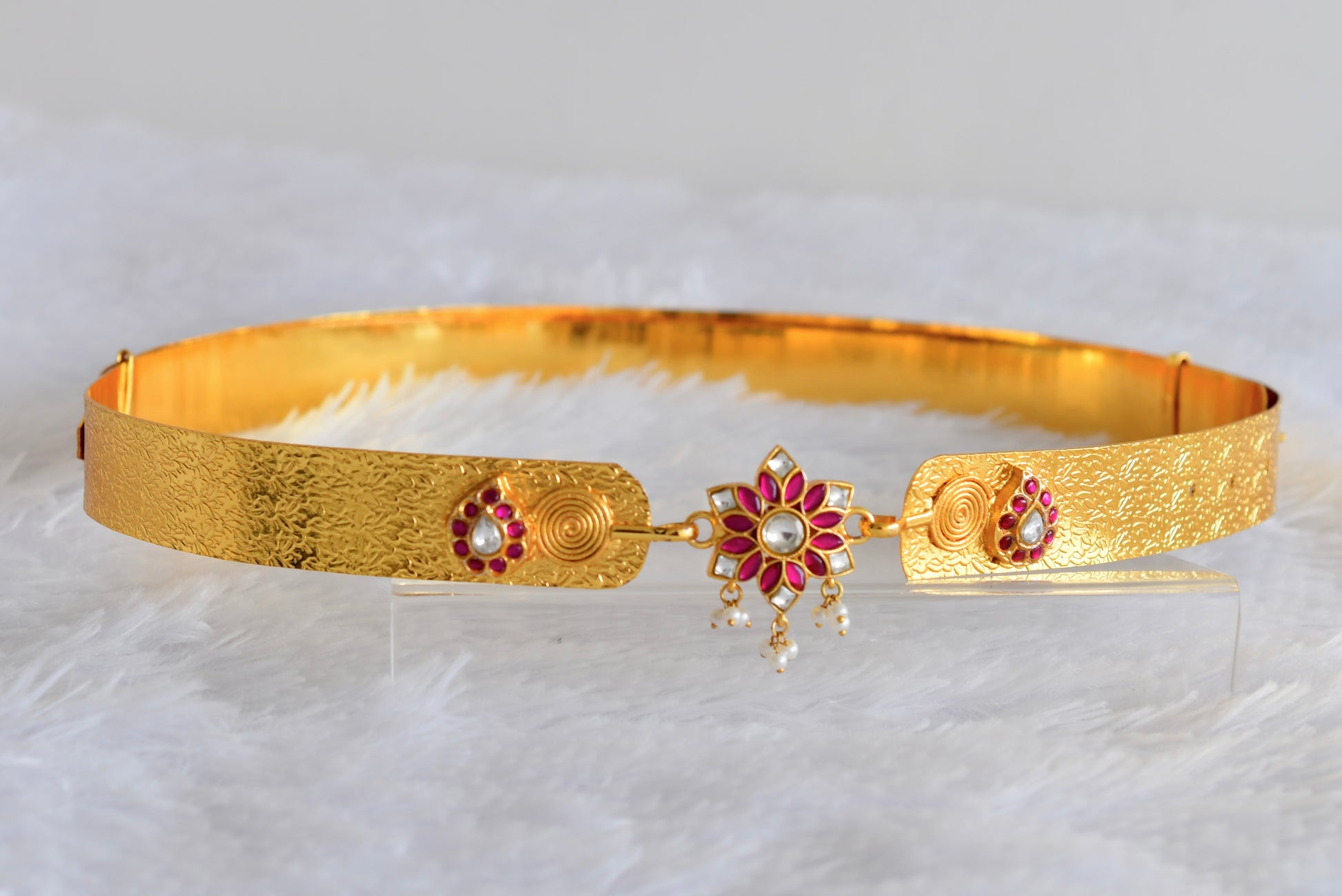 Gold tone pink-white kundan jadau flower mango waist band dj-52176