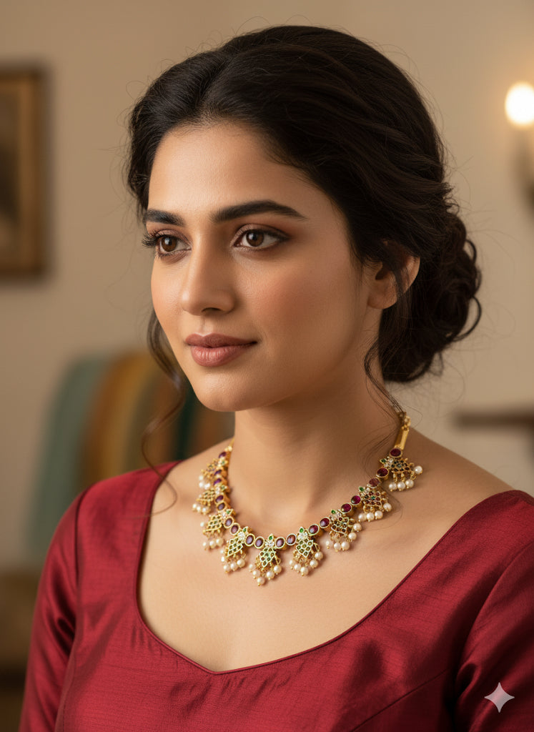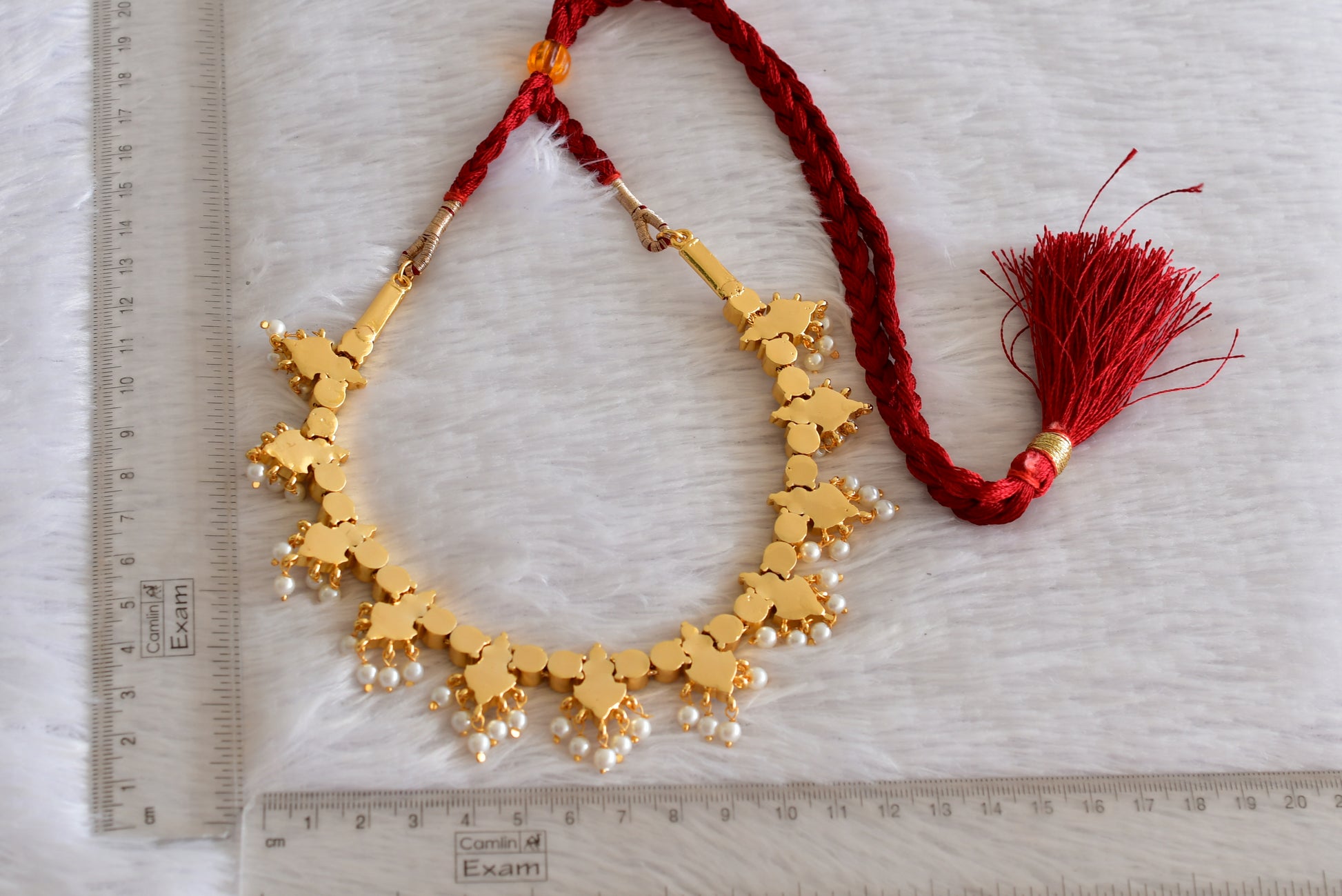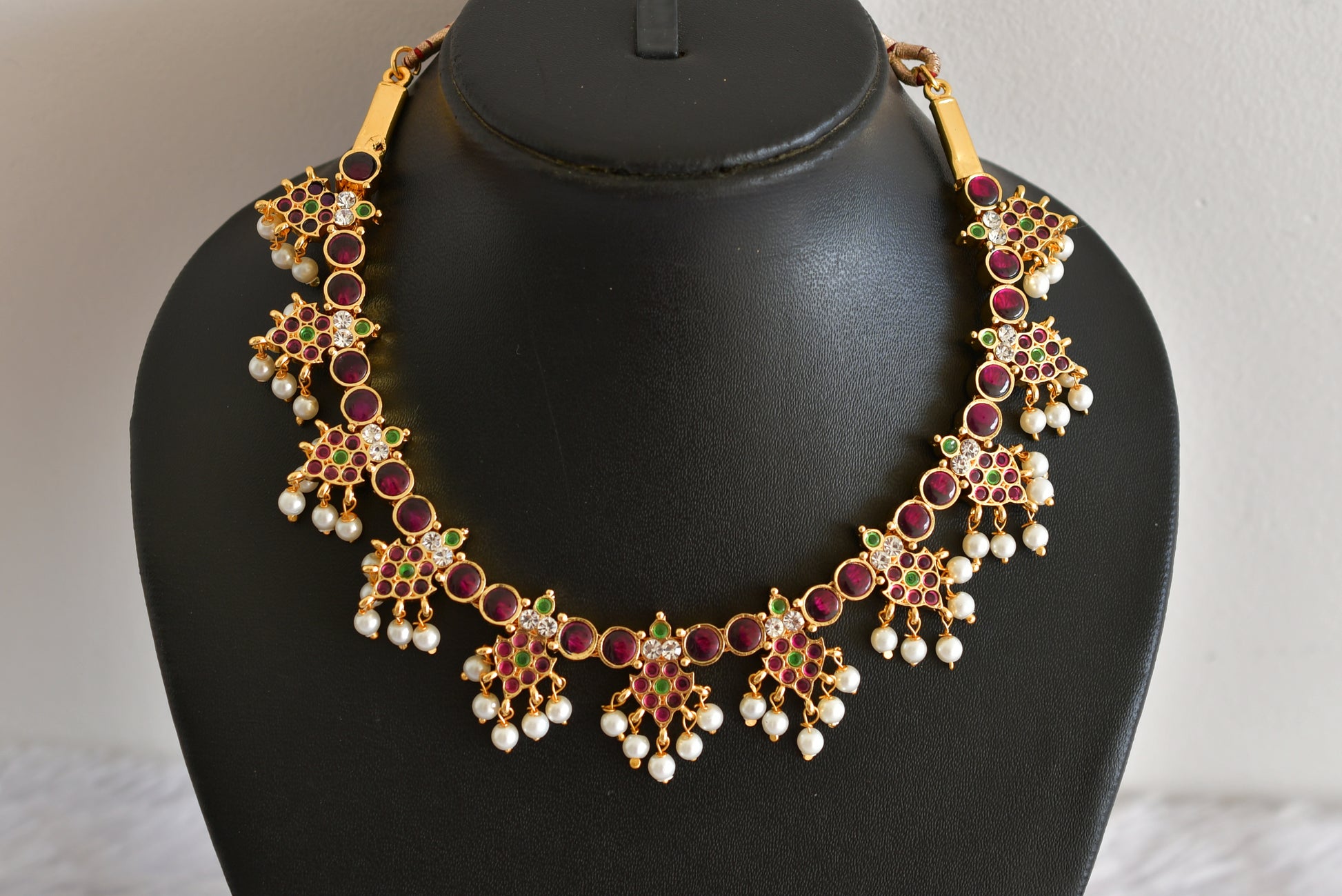 Gold tone precious kemp-green-white pearl necklace dj-52257