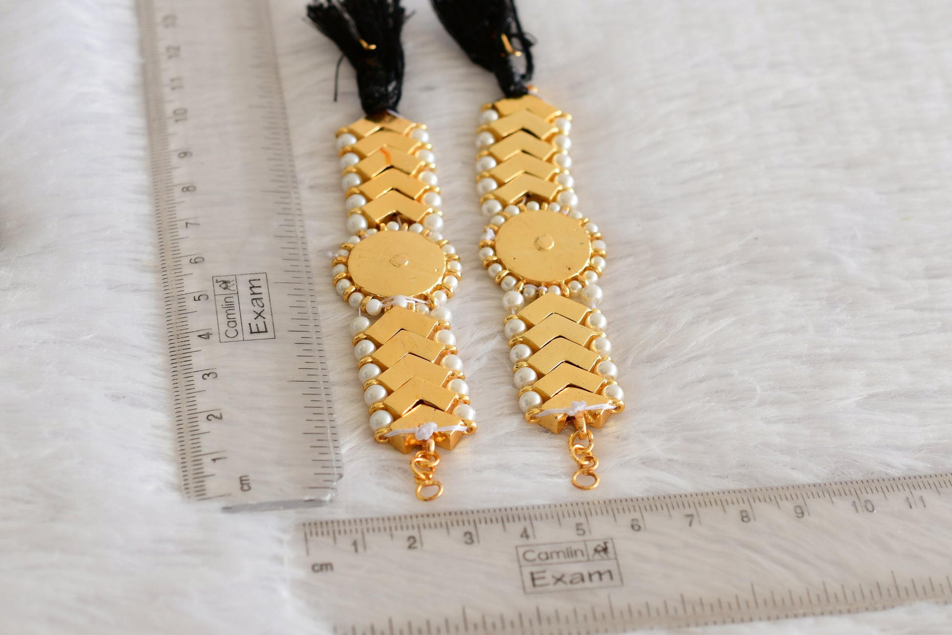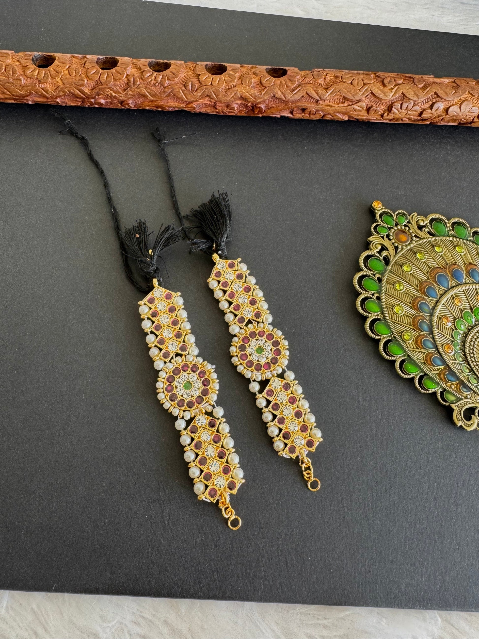 Gold tone precious kemp-green-white stone pearl ear side chain dj-52266