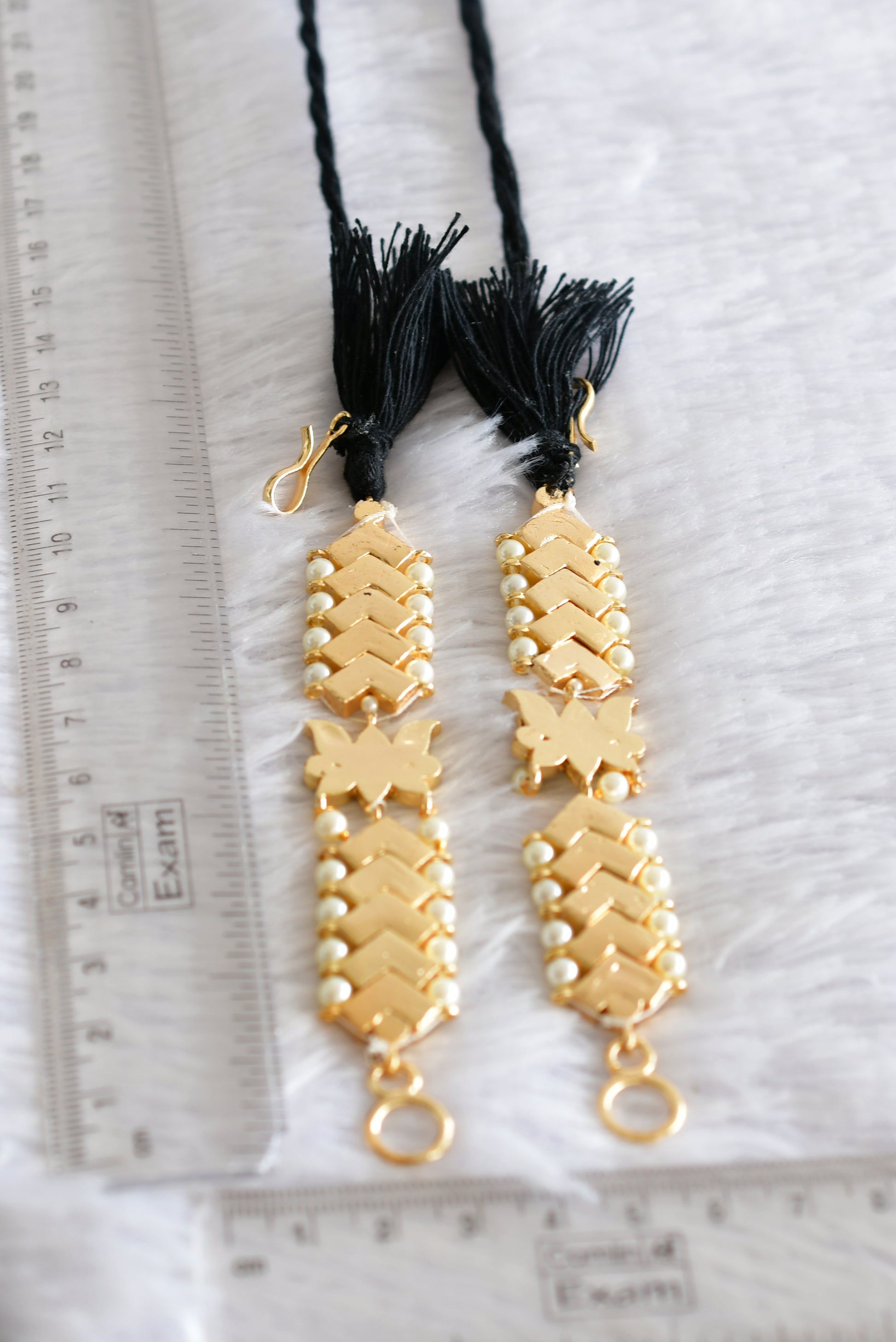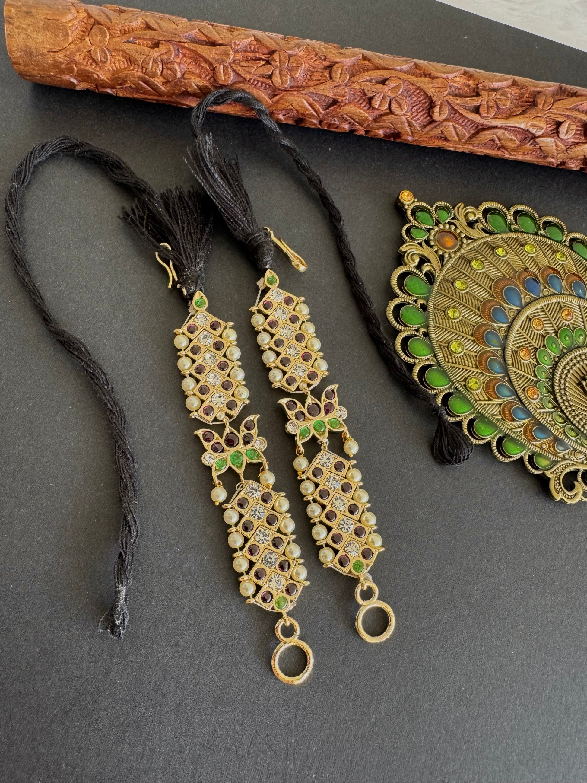 Gold tone precious kemp-green-white stone pearl lotus ear side chain dj-52265