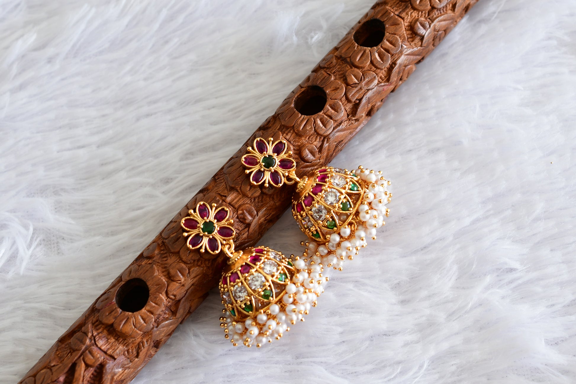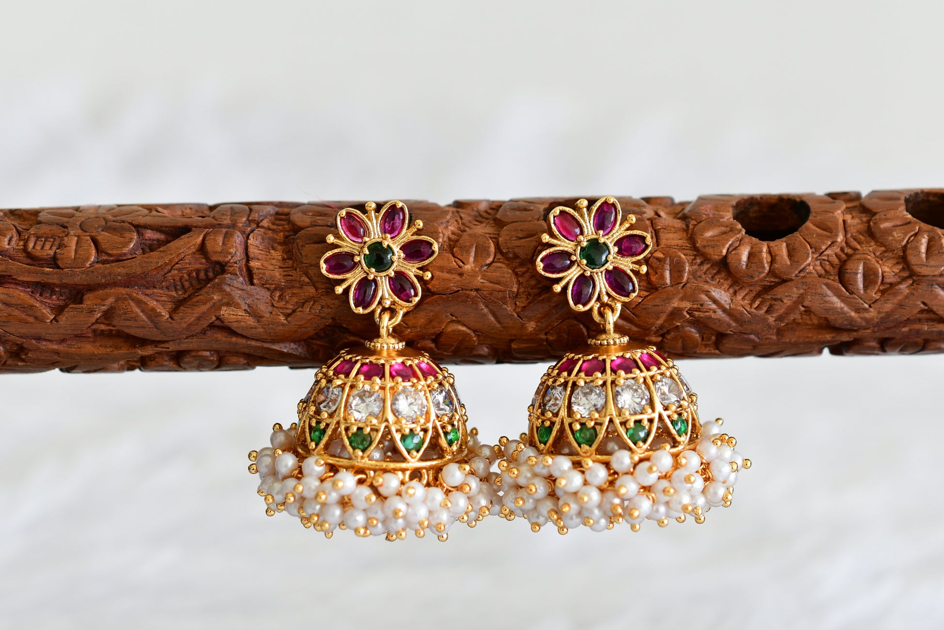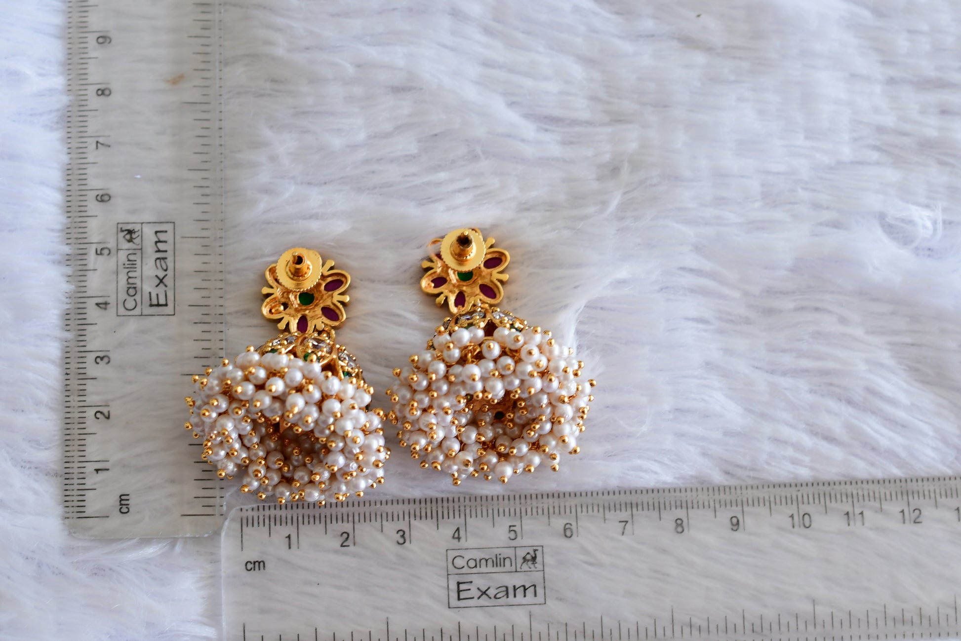Matte finish cz kemp-green pearl cluster jhumkka dj-33784