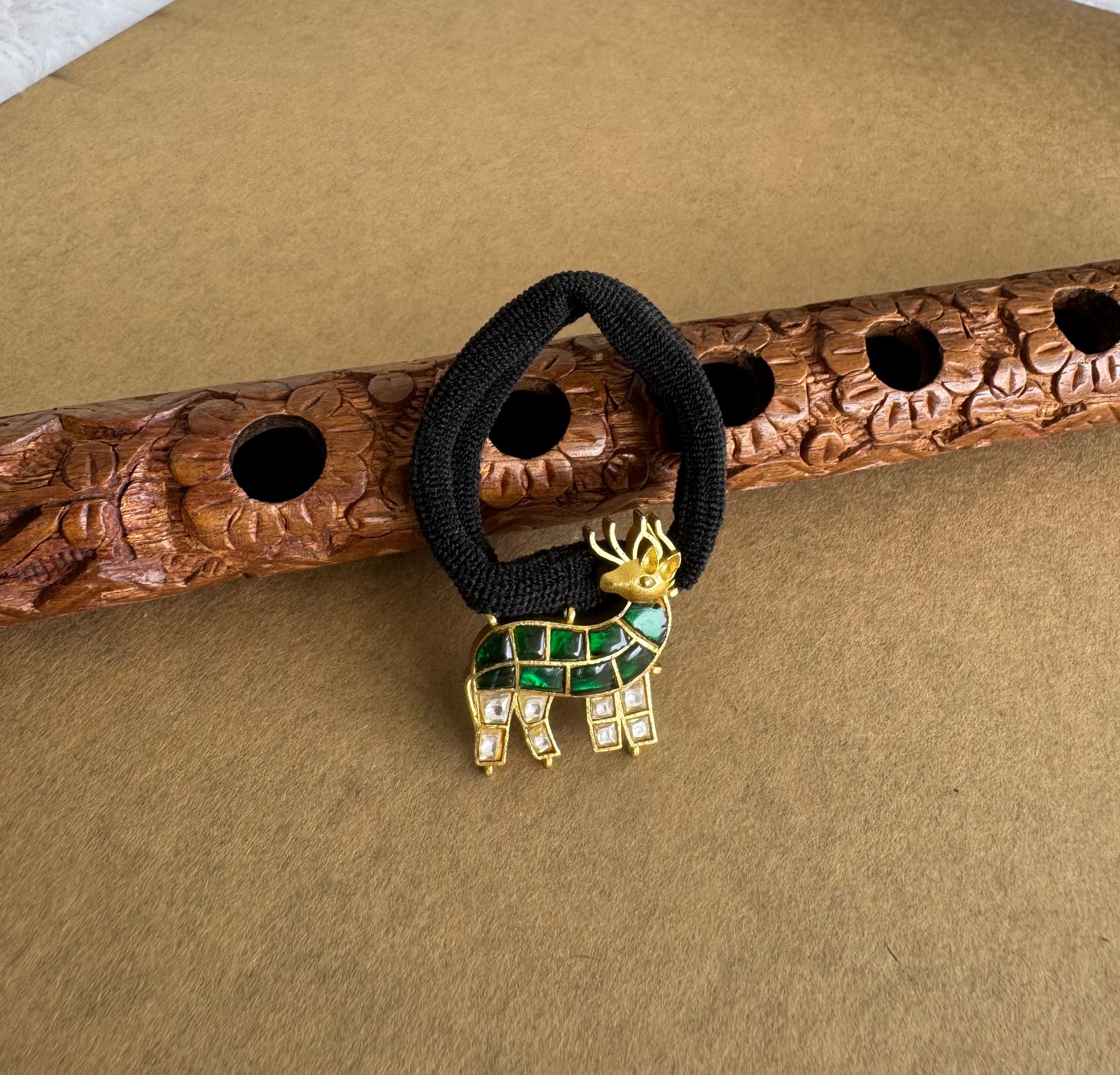 Matte finish green-white kundan jadau deer hair band dj-51517