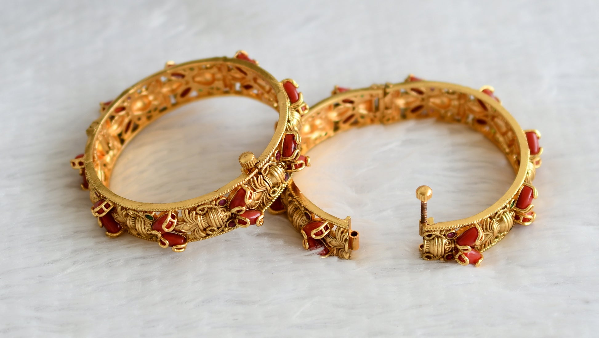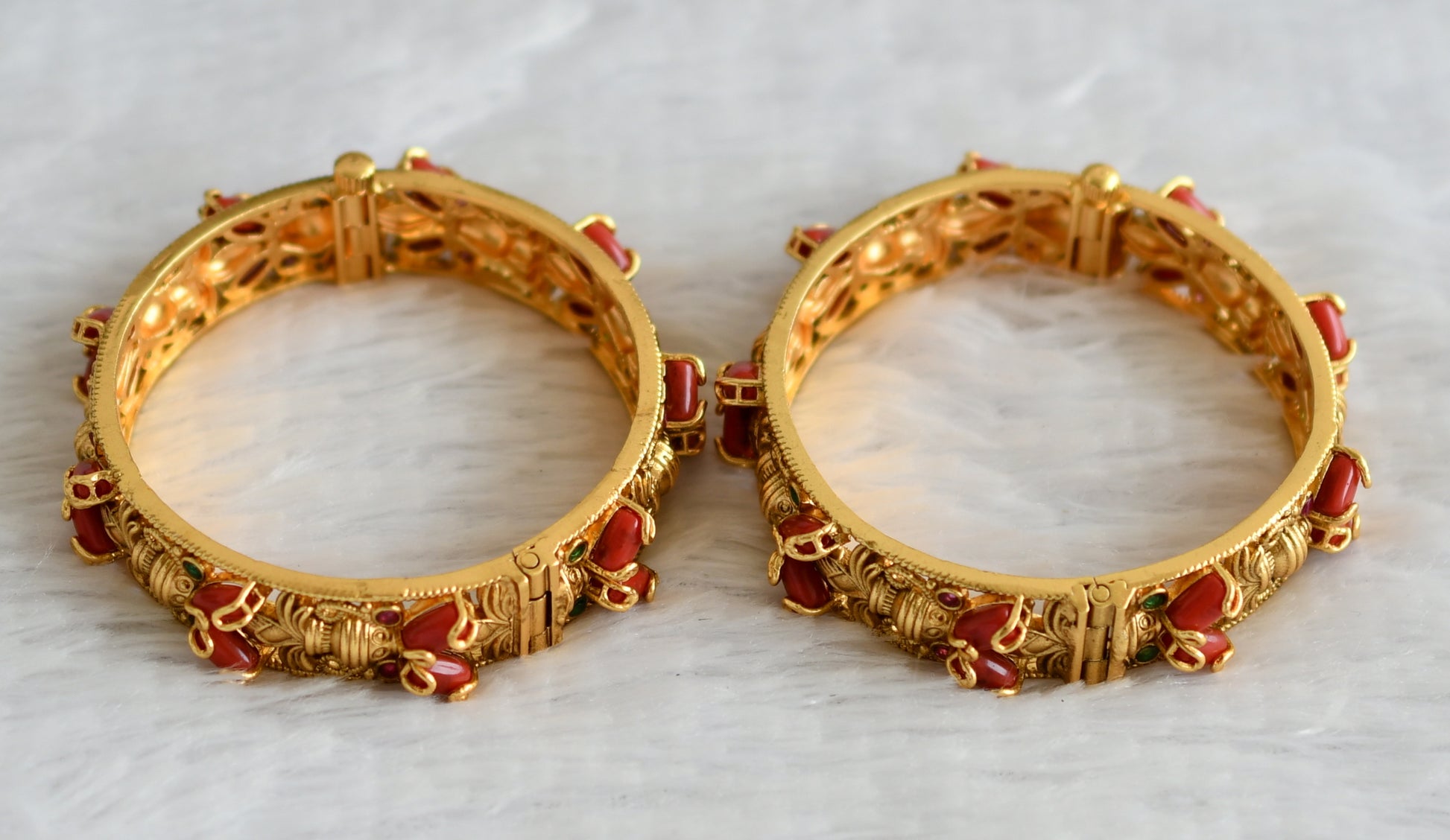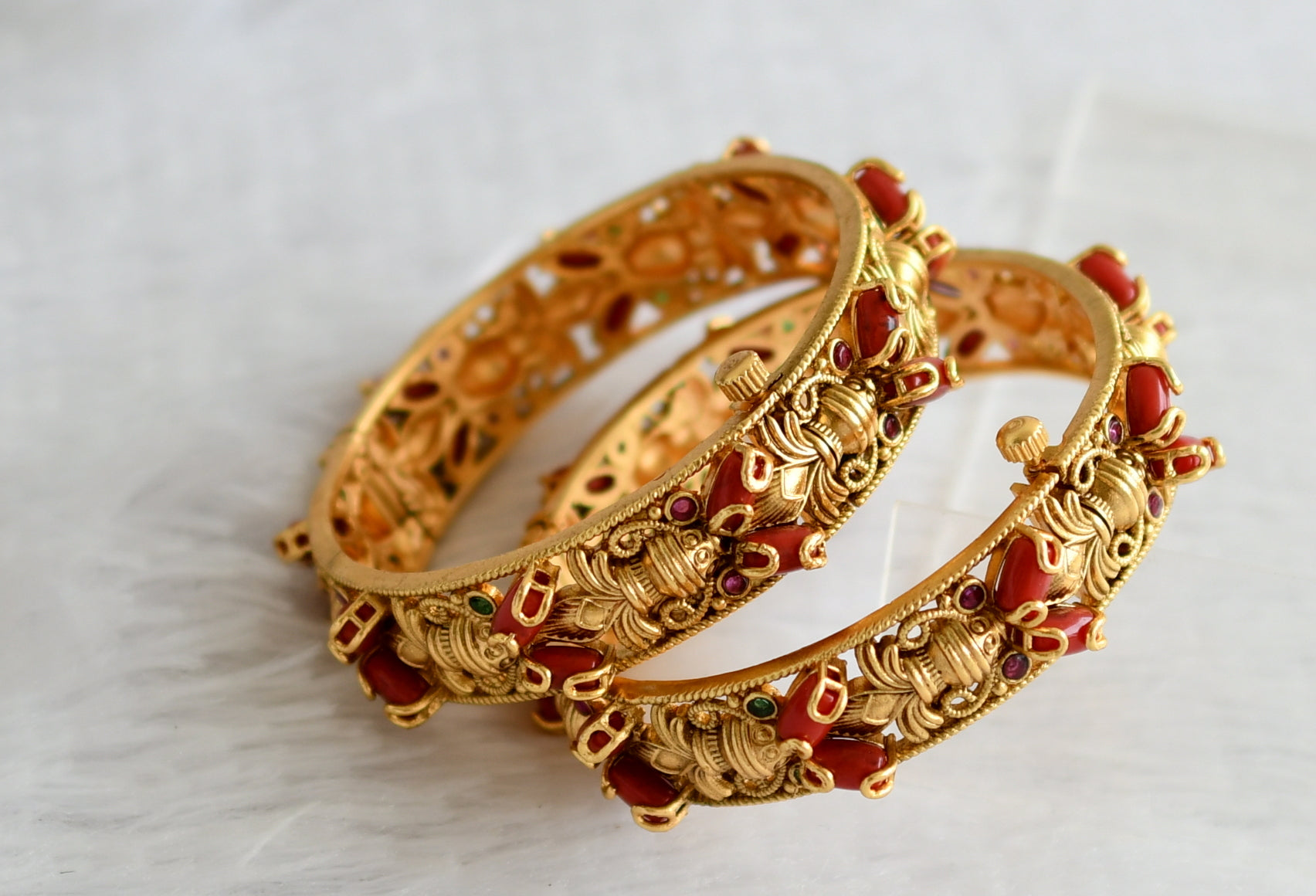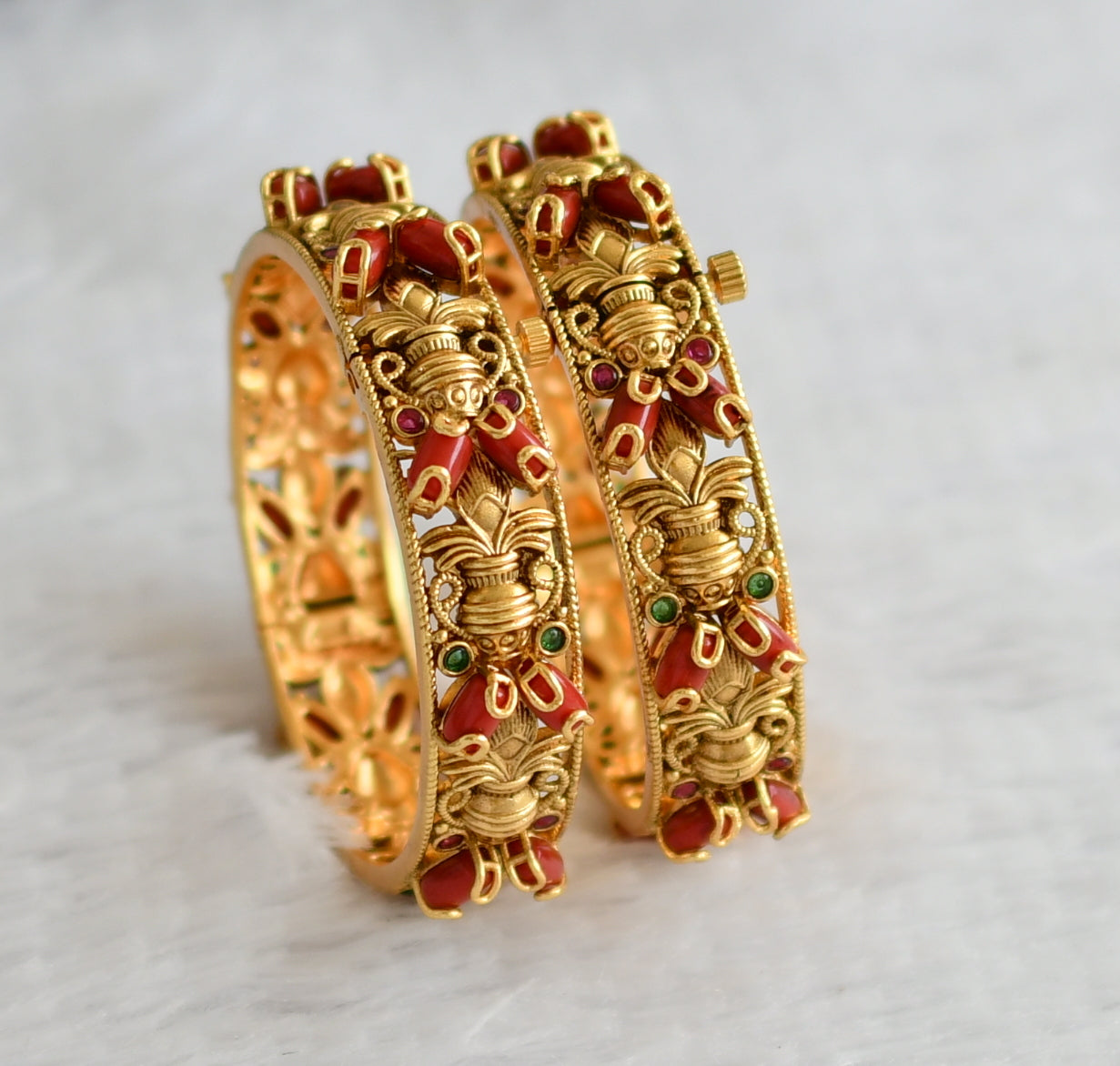 Matte finish kemp-green coral nakshi bnagles(2.8) dj-49981