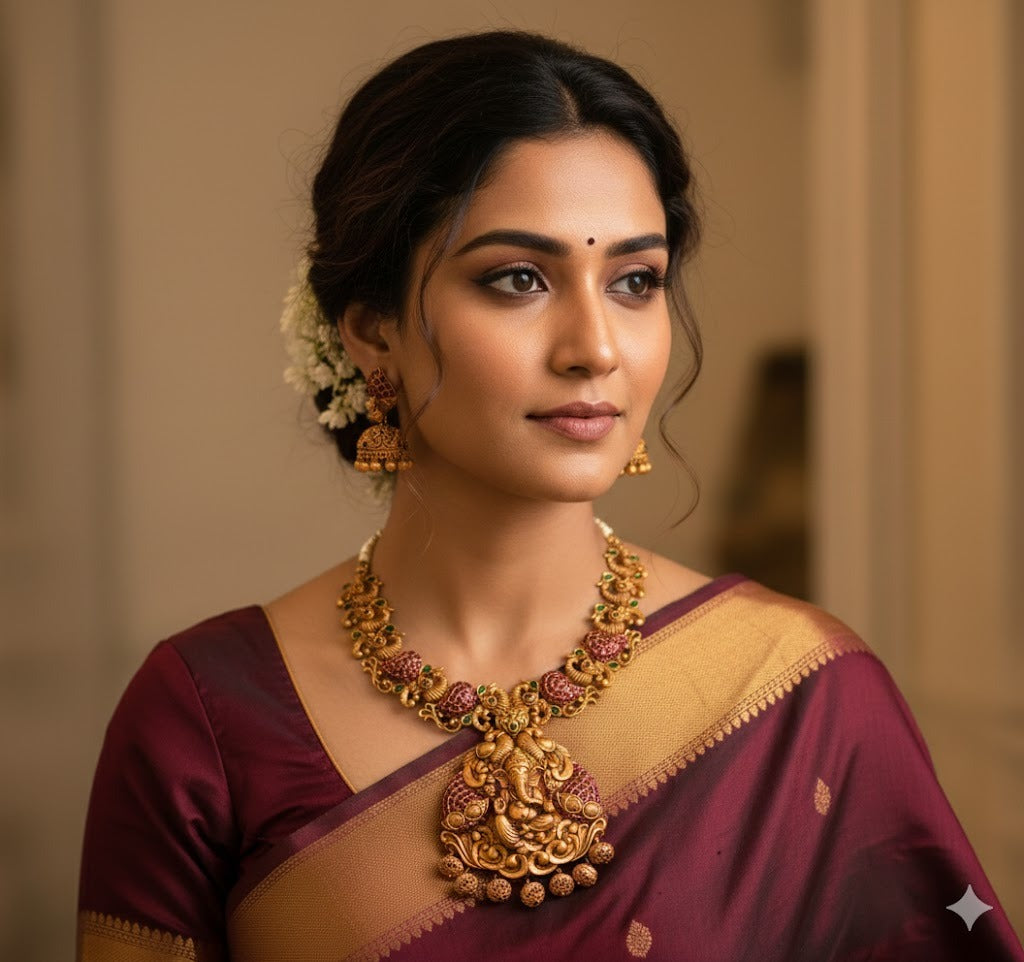 Matte finish kemp-green ganesha peacock nagasu necklace set dj-47690