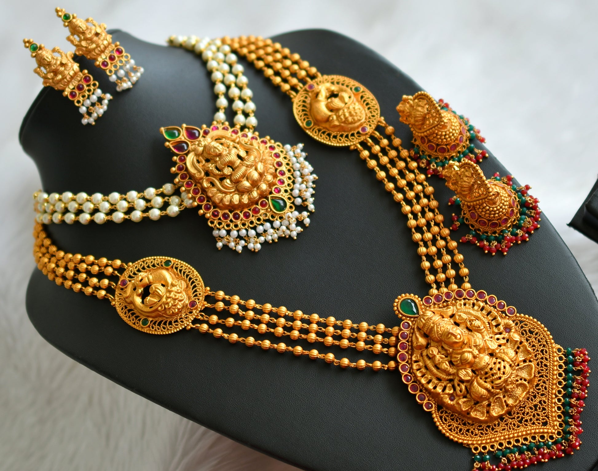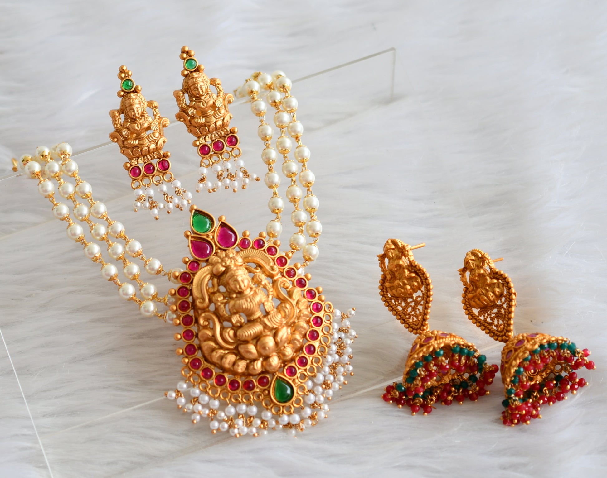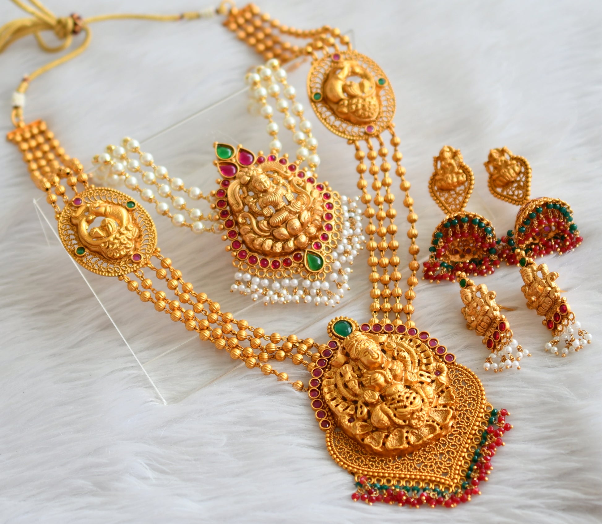 Matte finish kemp-green pearl lakshmi combo set dj-44464
