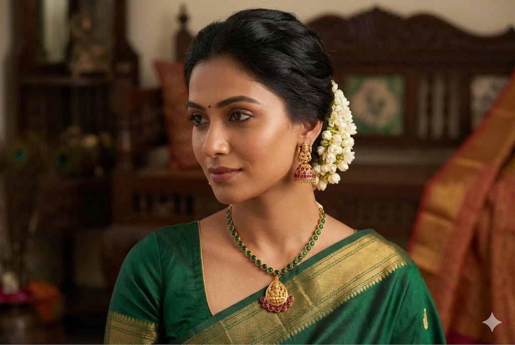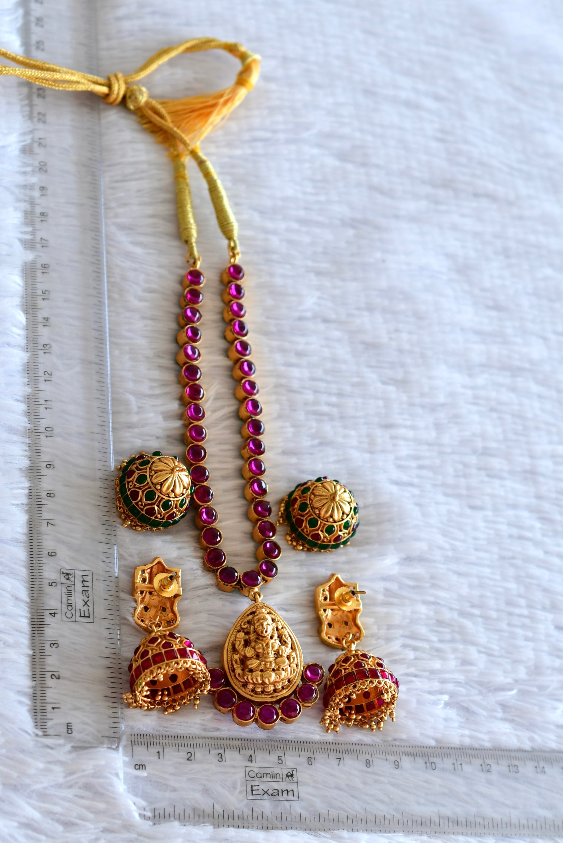 Matte finish kemp-green reversible Lakshmi necklace set dj-52412