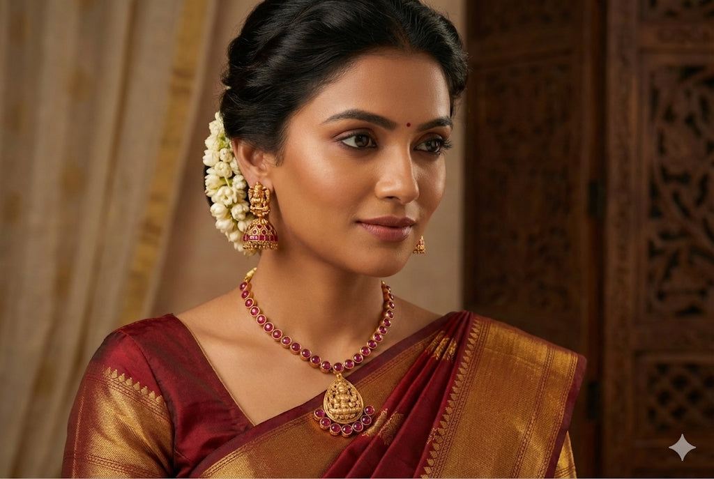 Product includes a necklace, a lakshmi tops with 2 pair of jhumkka