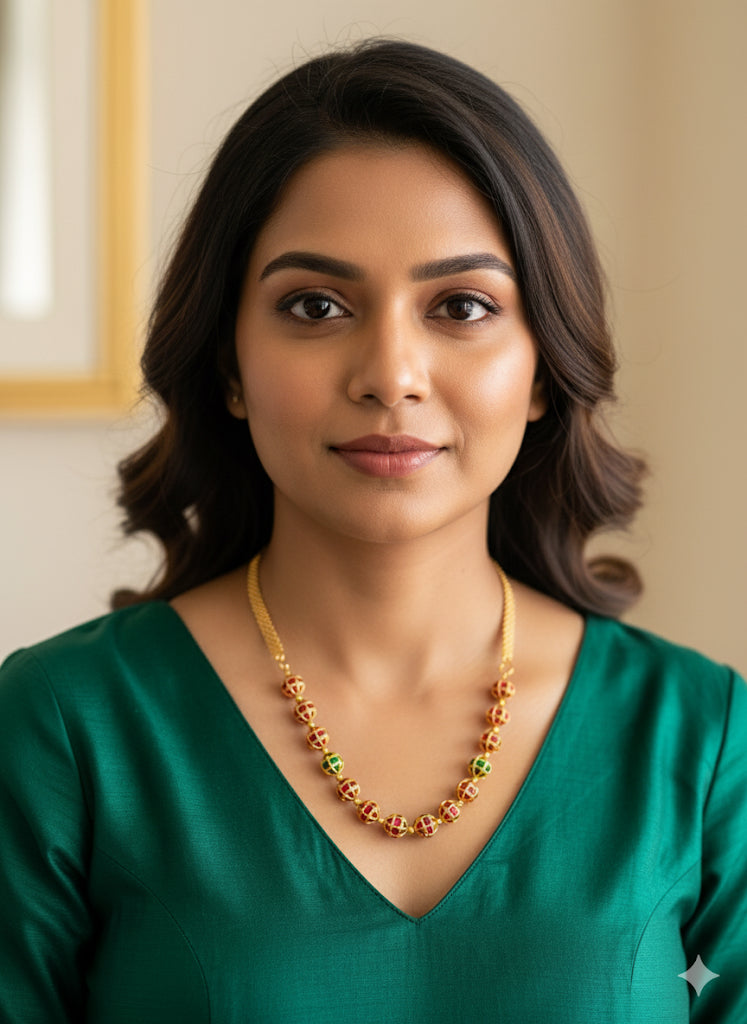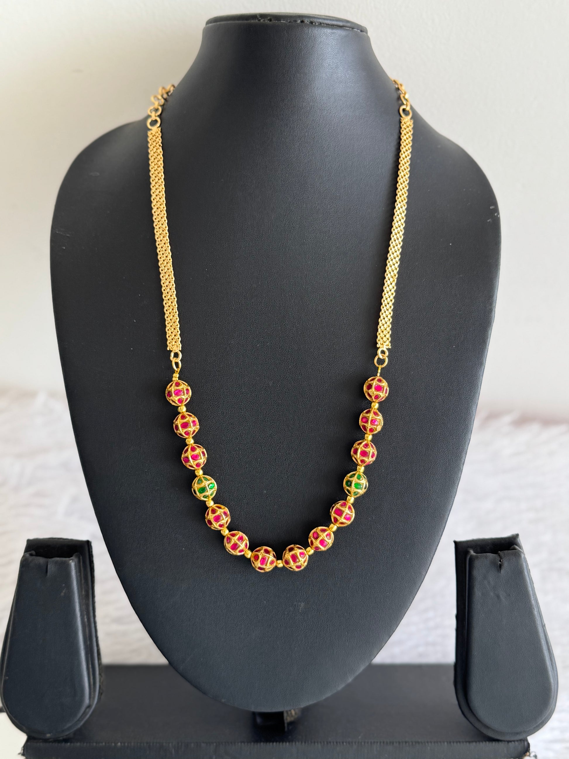 Matte finish pink-green stone jadau beaded chain dj-51512