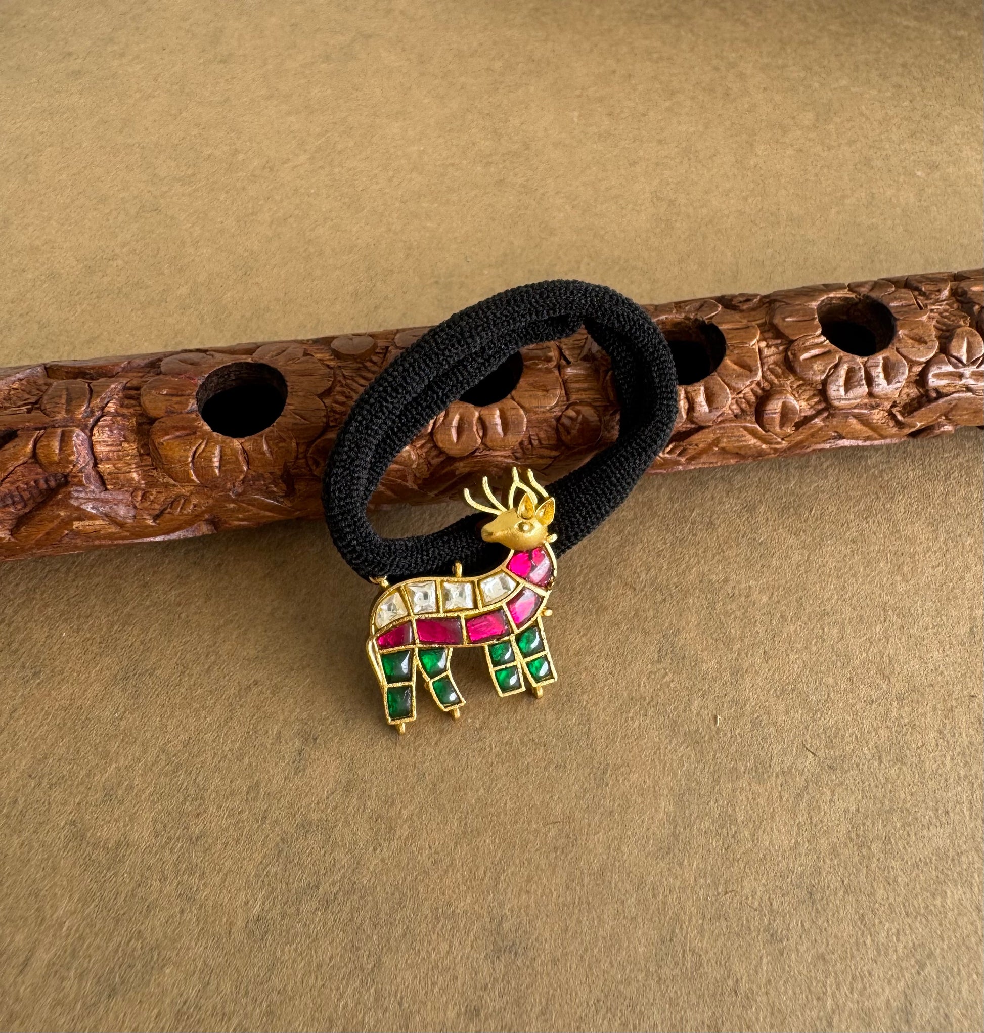 Matte finish pink-green-white kundan jadau deer hair band dj-51515