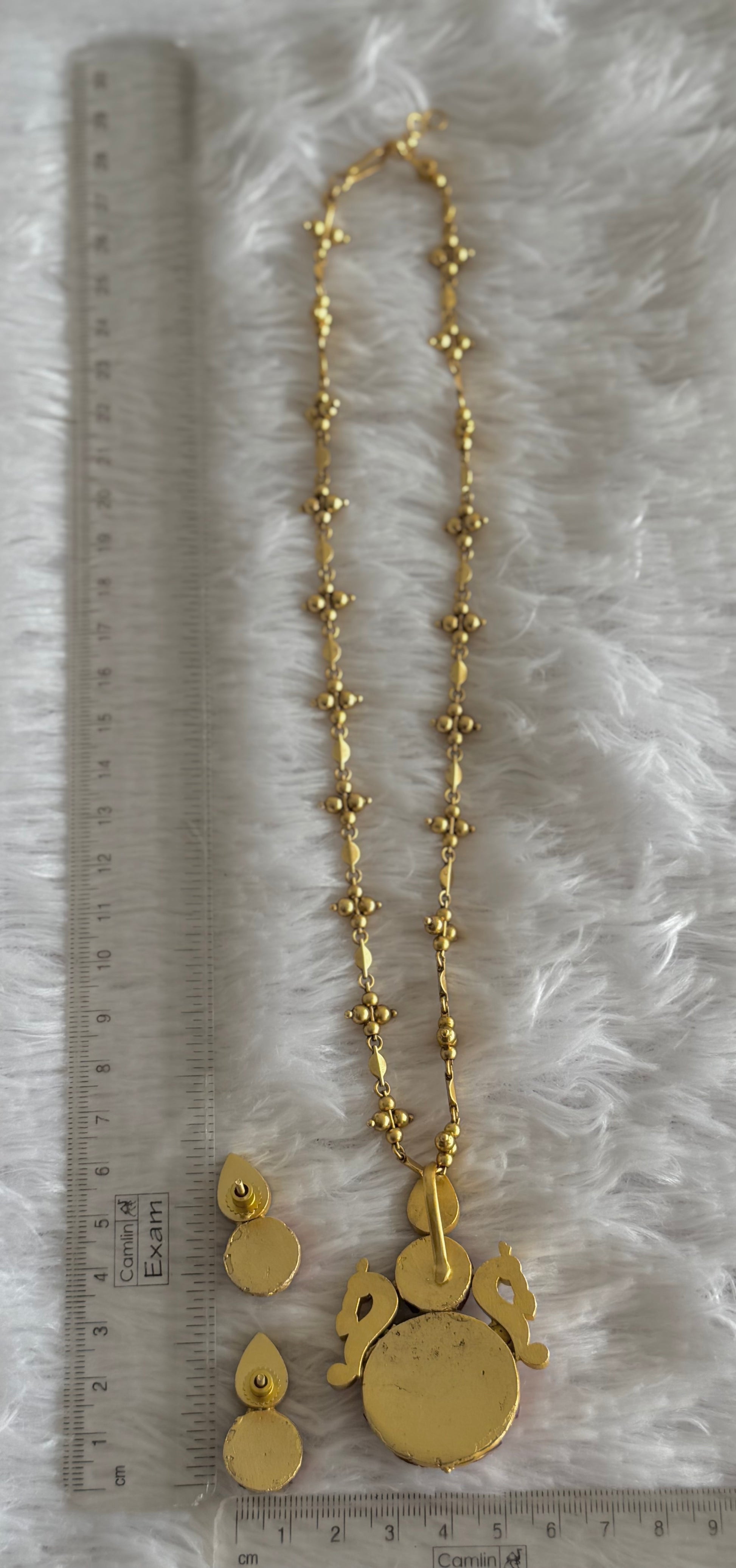 Product includes a beaded necklace with pendant and a pair of earrings