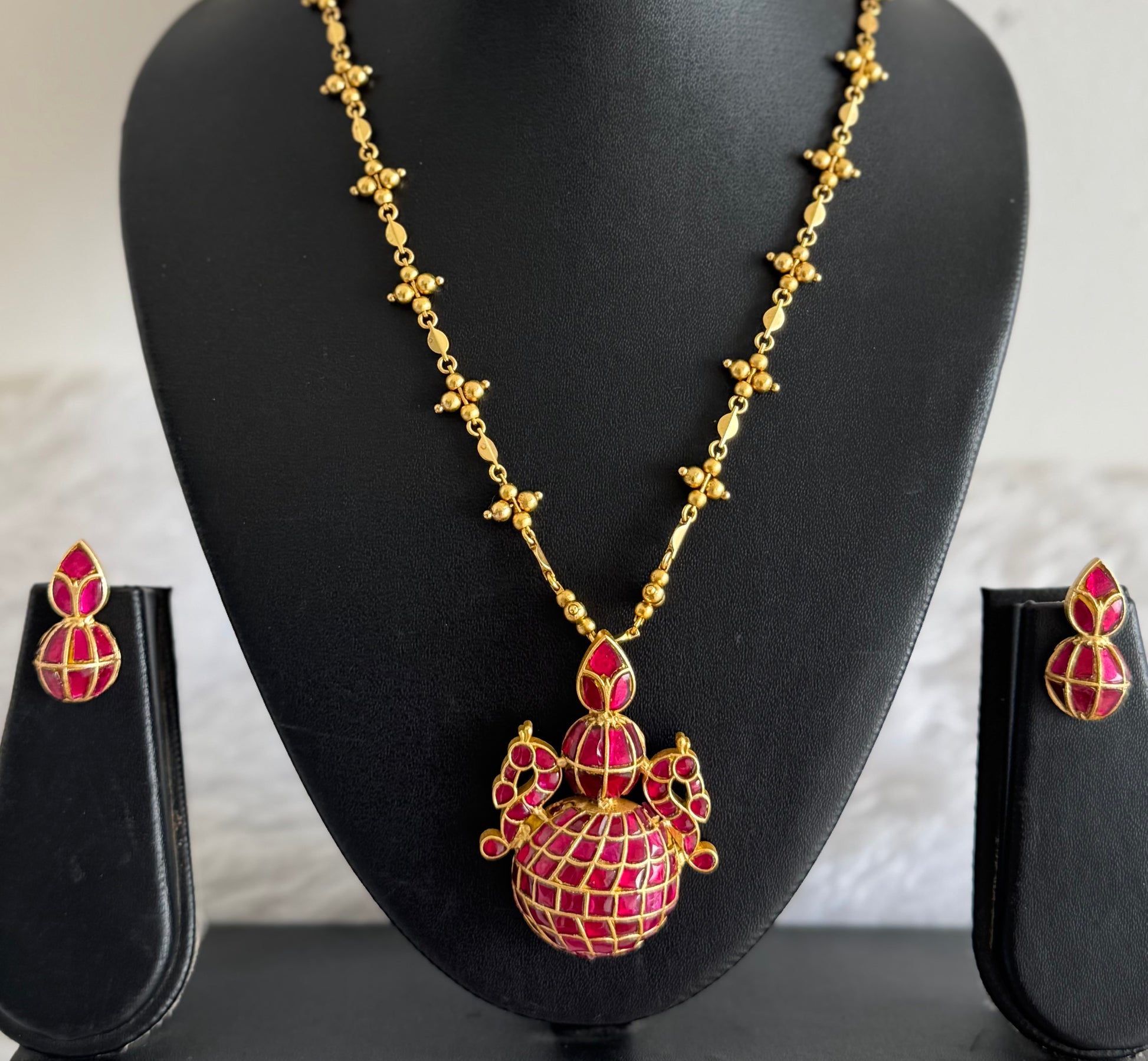 Matte finish pink kundan jadau peacock kalash necklace set dj-51538