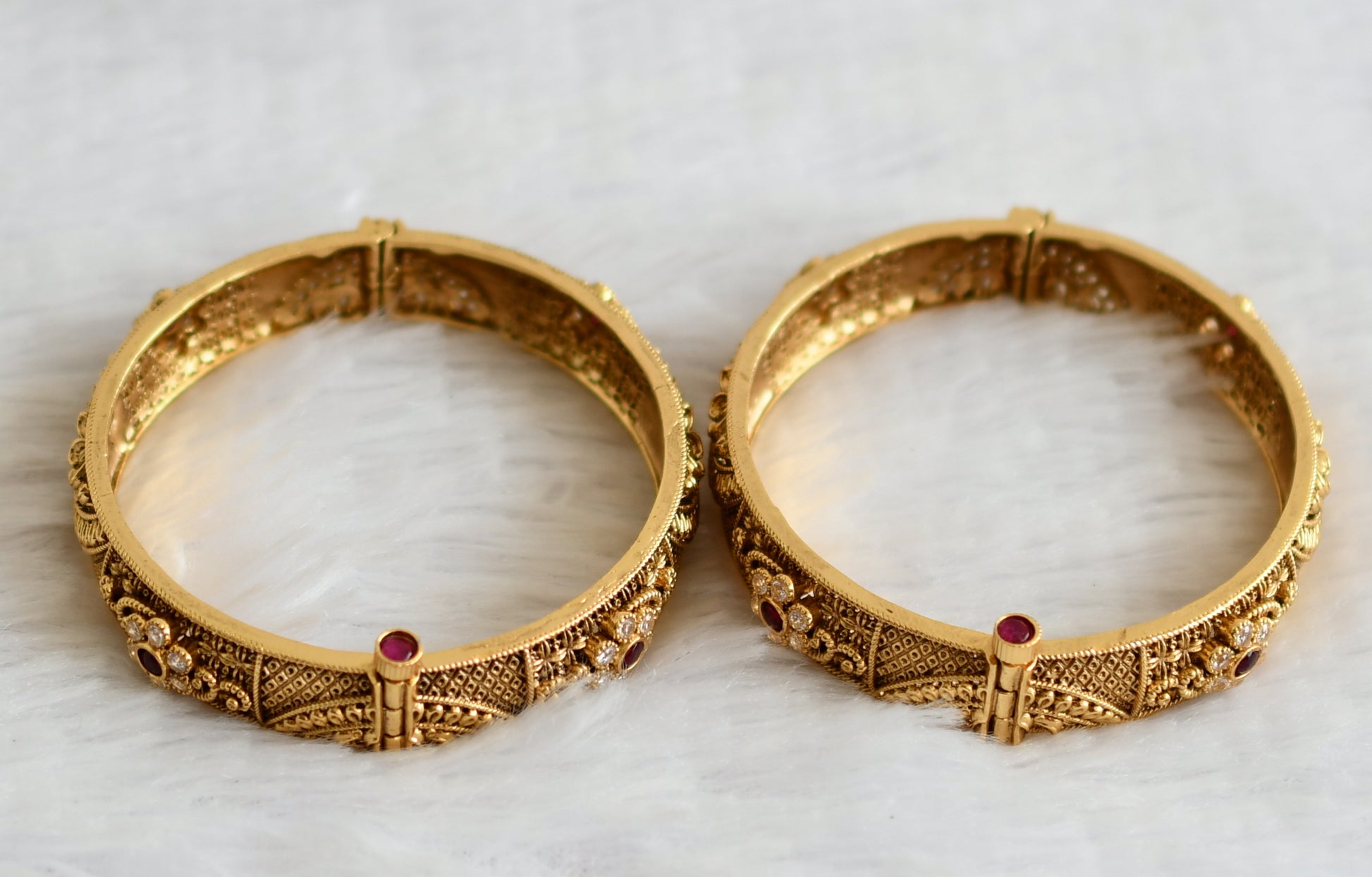 Antique finish kemp-white stone flower screw type bangles(2.6) dj-50948