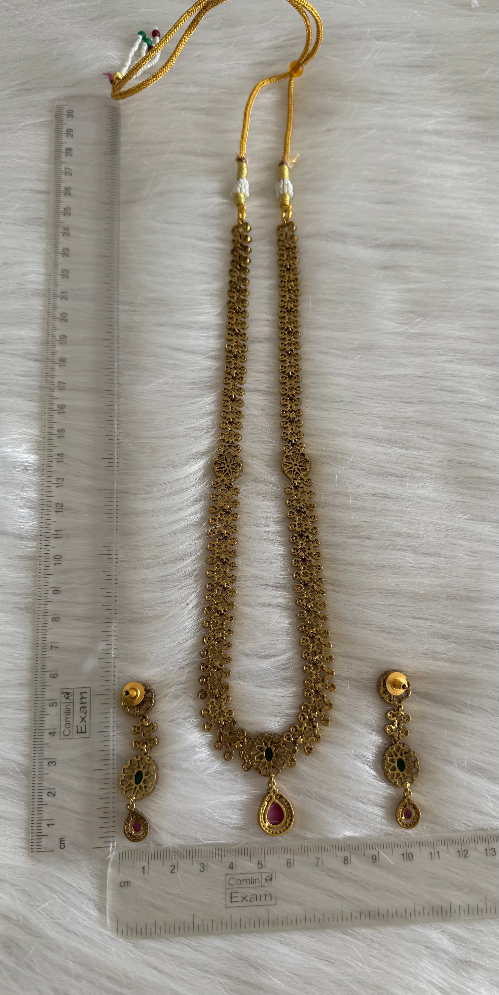 Antique gold tone cz ruby-green flower haar set dj-51235