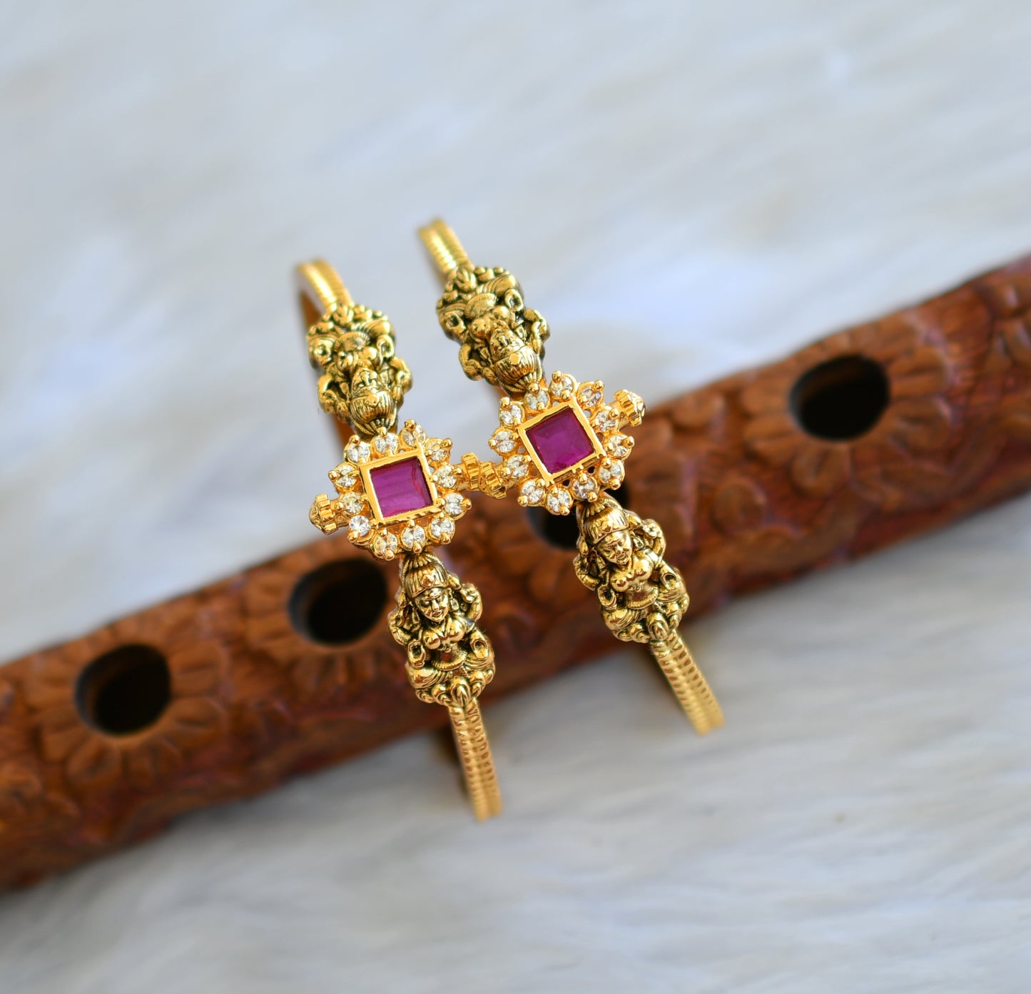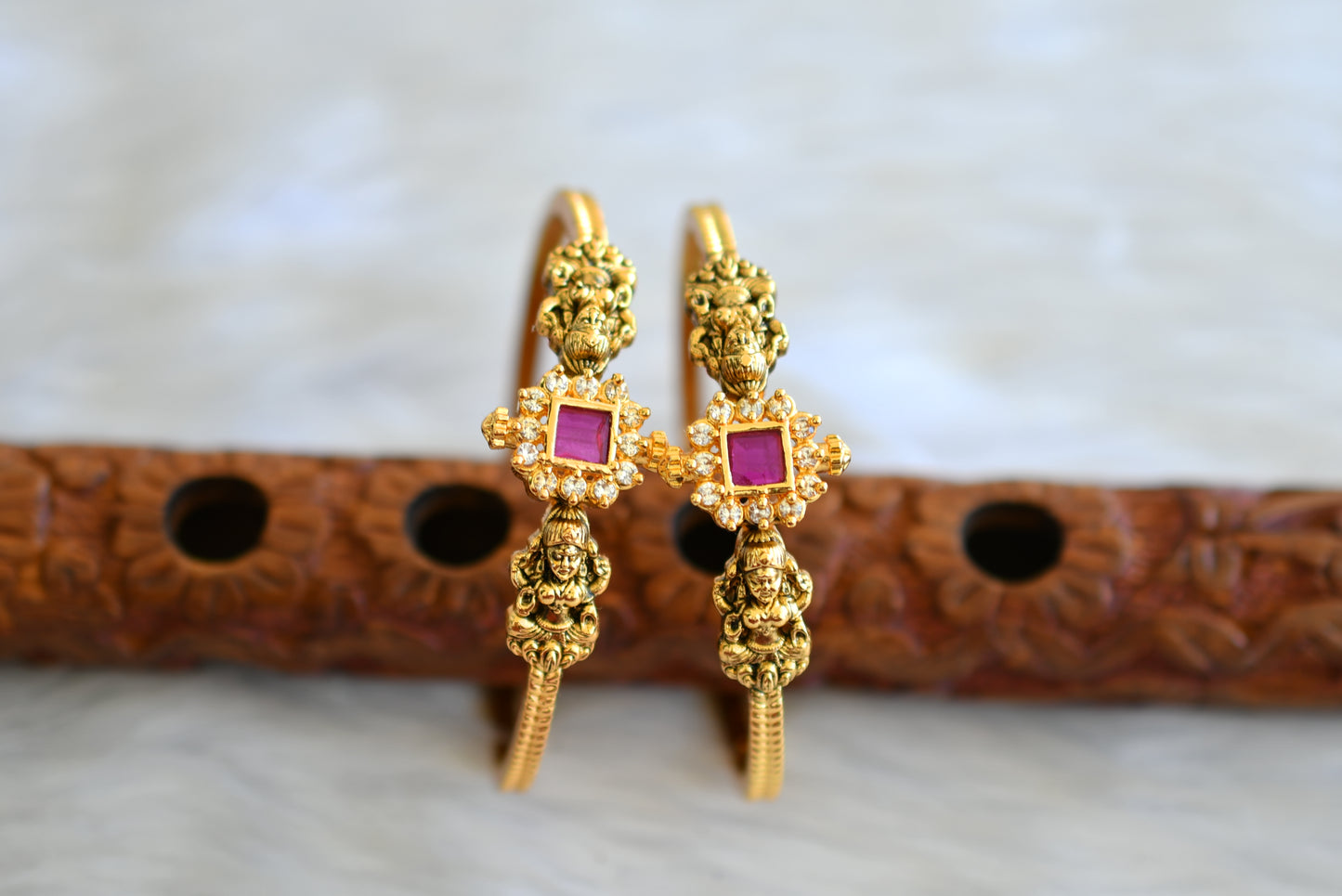 Antique gold tone Cz Ruby Lakshmi bangles(2.4) dj-42571