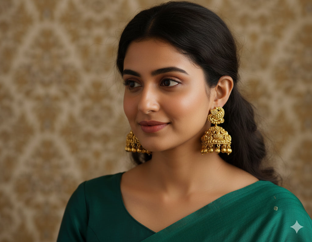 Antique gold tone cz white Nakshi peacock lakshmi jhumkka dj-50511