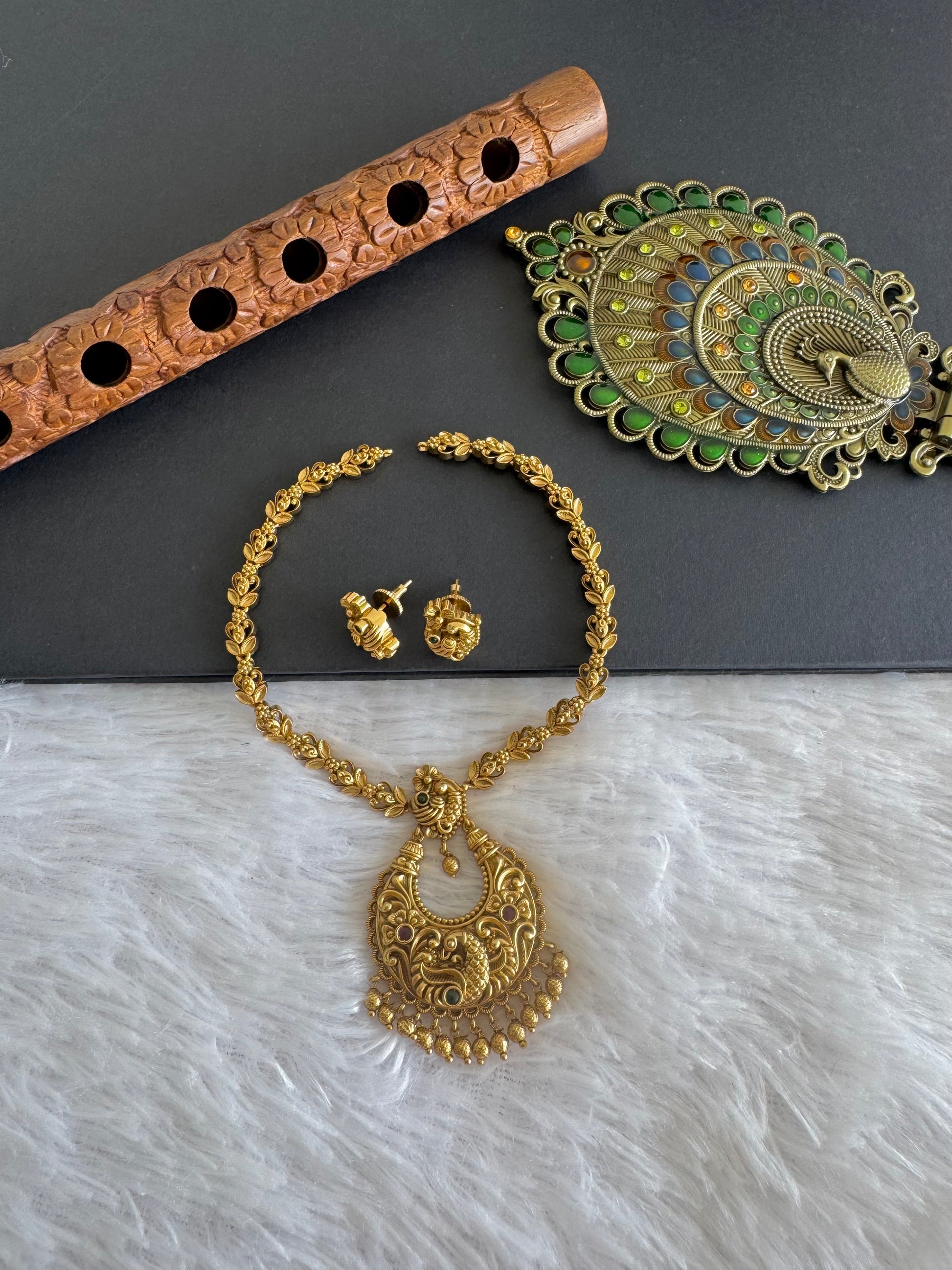 Antique gold tone cz white peacock bali necklace set dj-52130