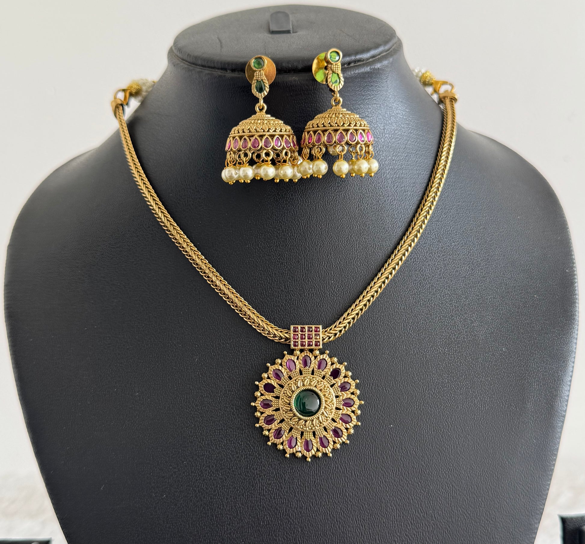 Antique gold tone kemp-green kerala style necklace set dj-52077