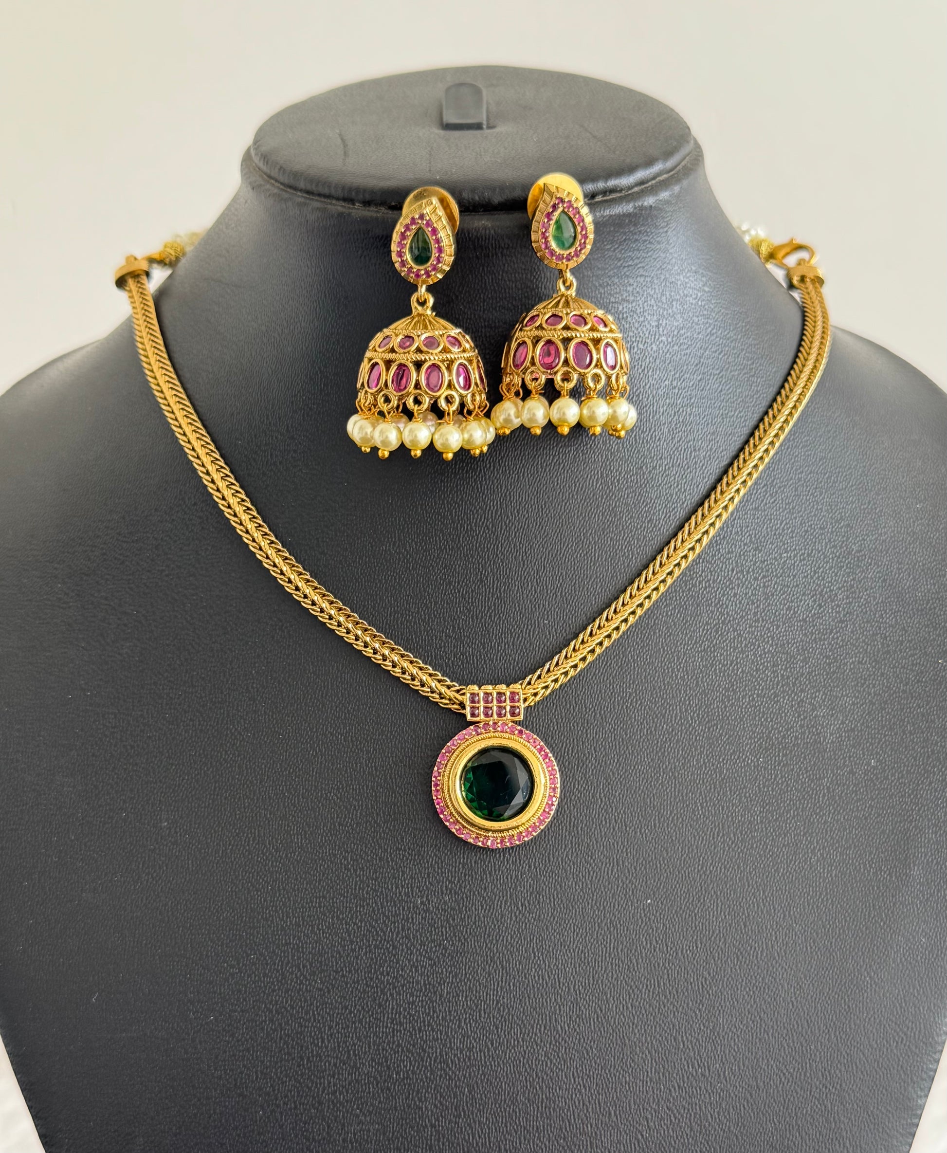 Product includes a necklace and a pair of jhumkka