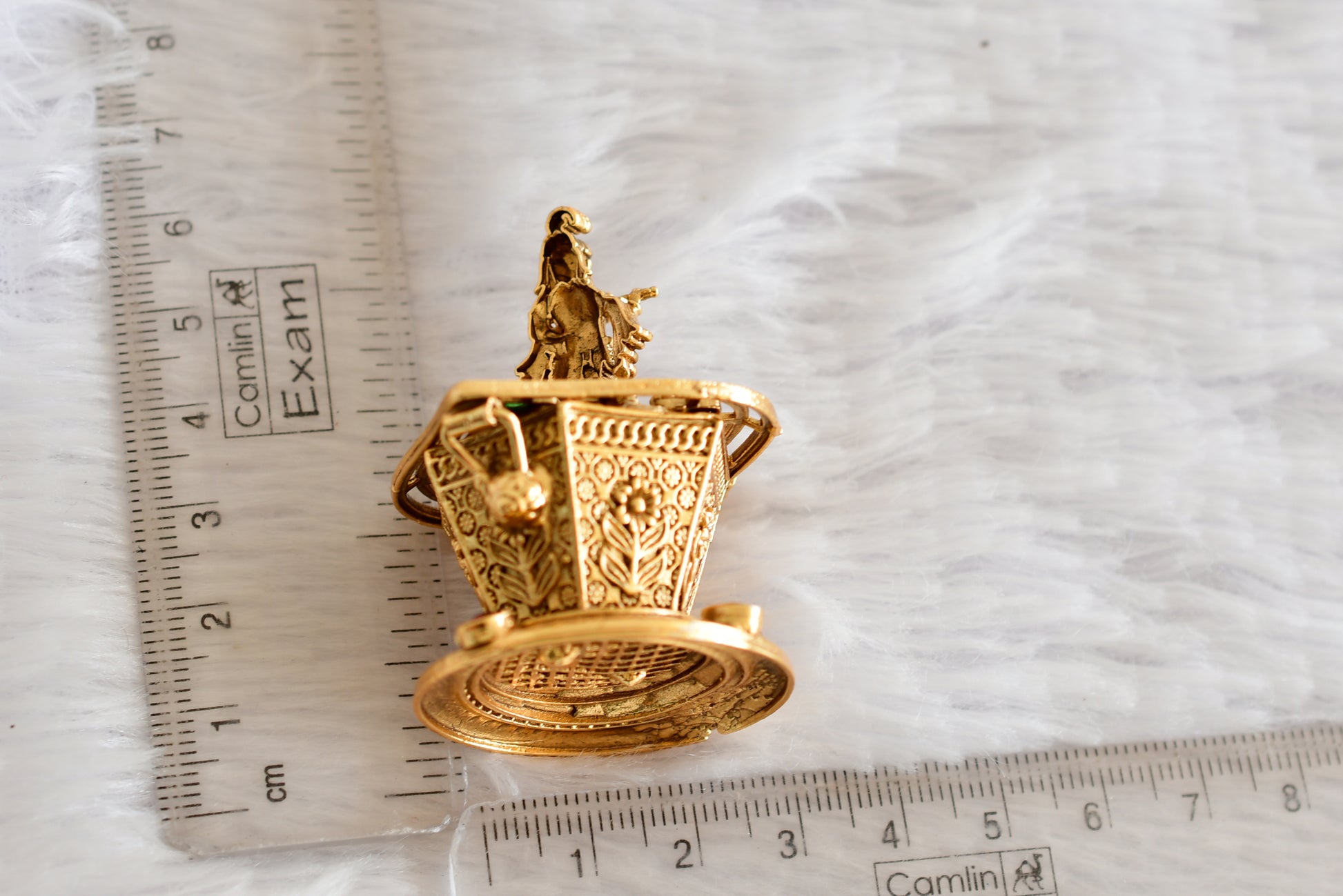 Antique gold tone kemp-green Shri Krishna kumkum box dj-52315