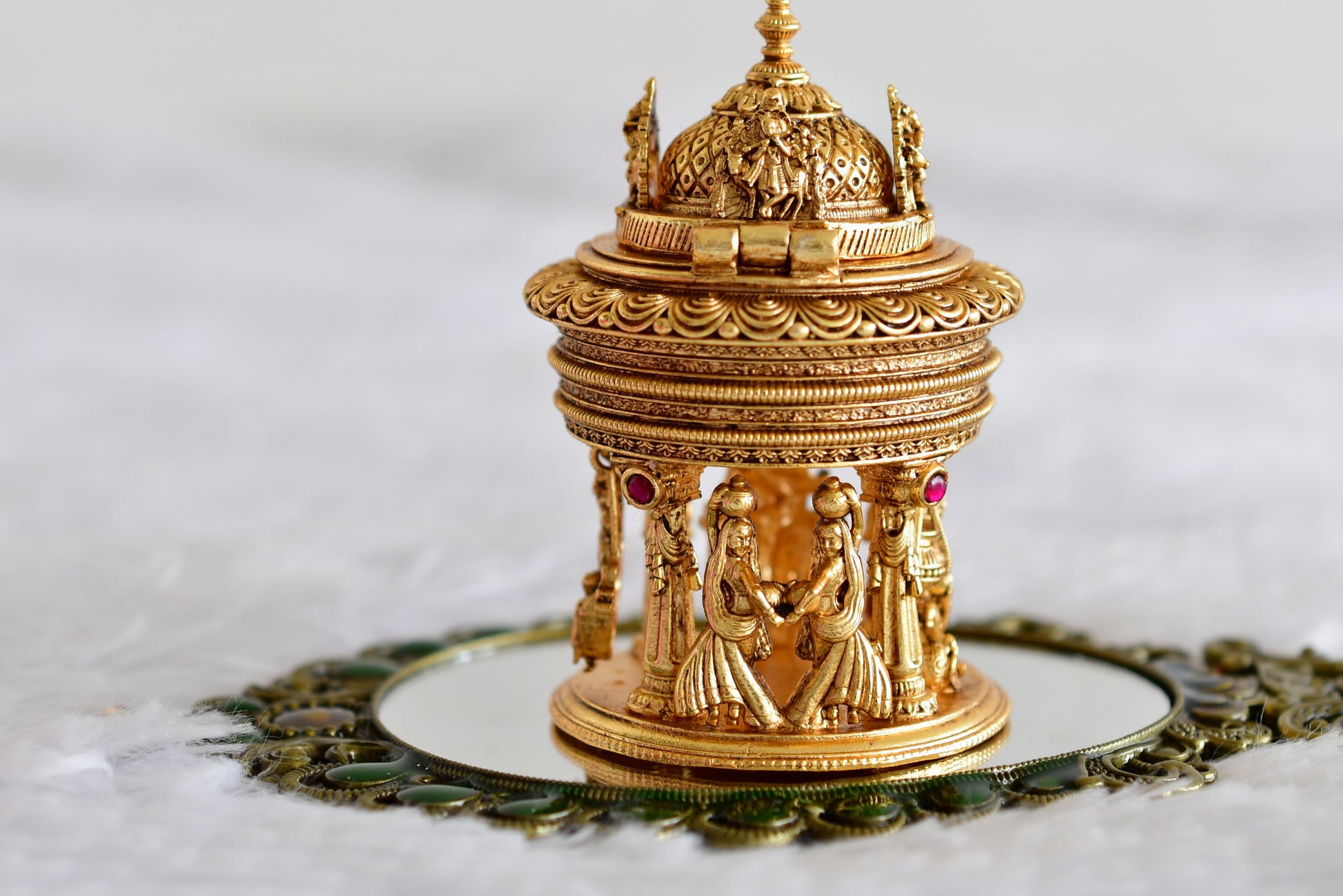 Antique gold tone kemp Radhe-Krishna temple kumkum box dj-52320