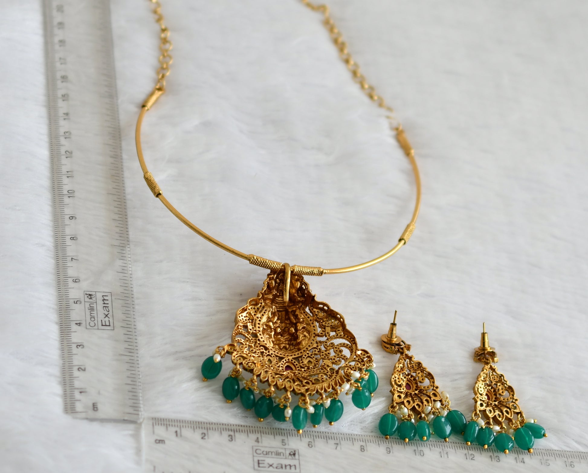 Antique gold tone kemp-white lakshmi green bead hasli necklace set dj-50834