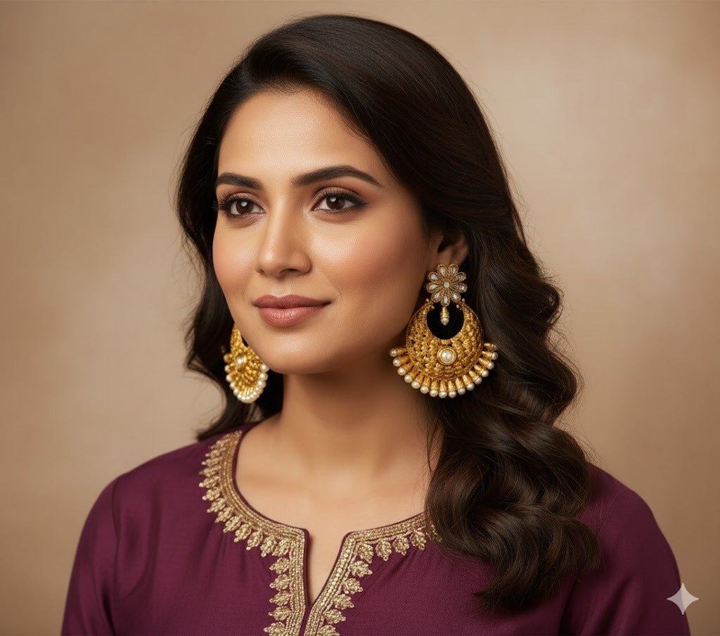 Size and fit : A Earrings - Length : 6 cm , Width : 5 cm