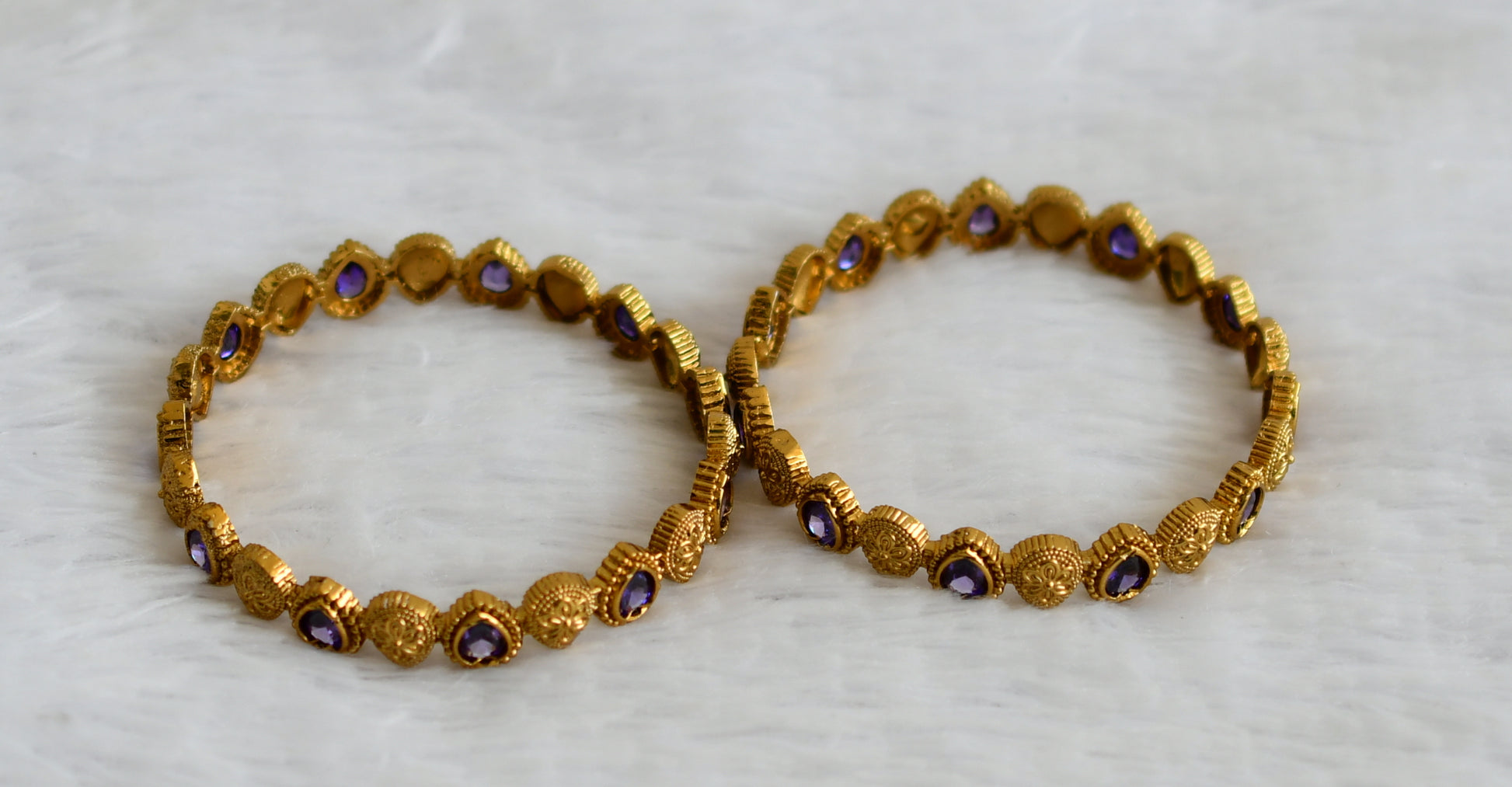 Antique gold tone purple thilak stone bangles(2.4) dj-50899