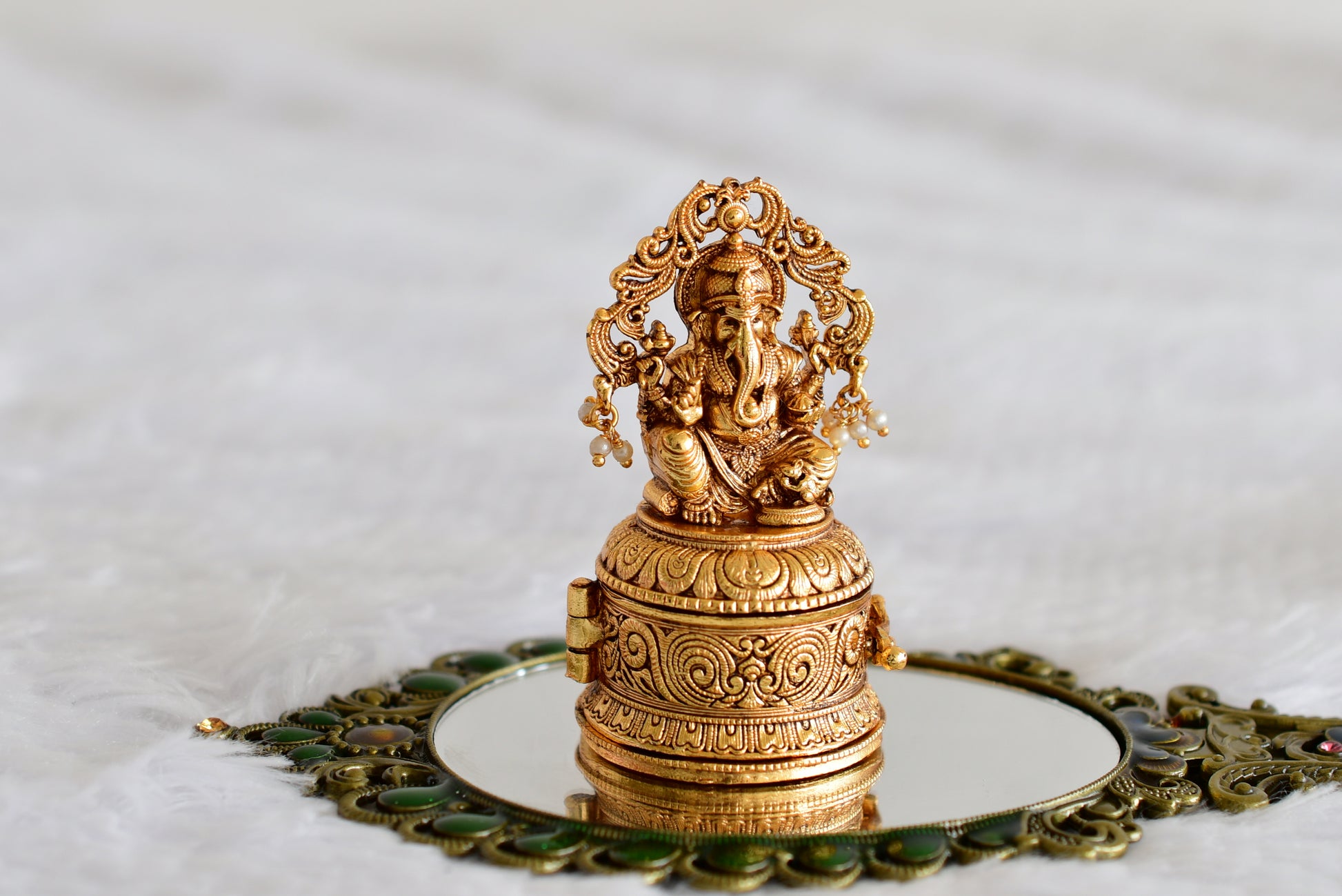 Antique gold tone Shri Ganesha kumkum box dj-52326