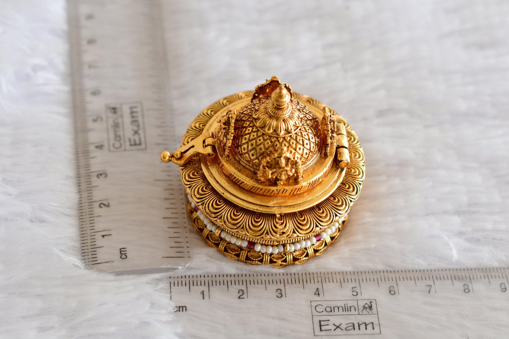 Antique gold tone Shri Krishna temple kumkum box dj-52324