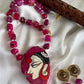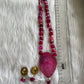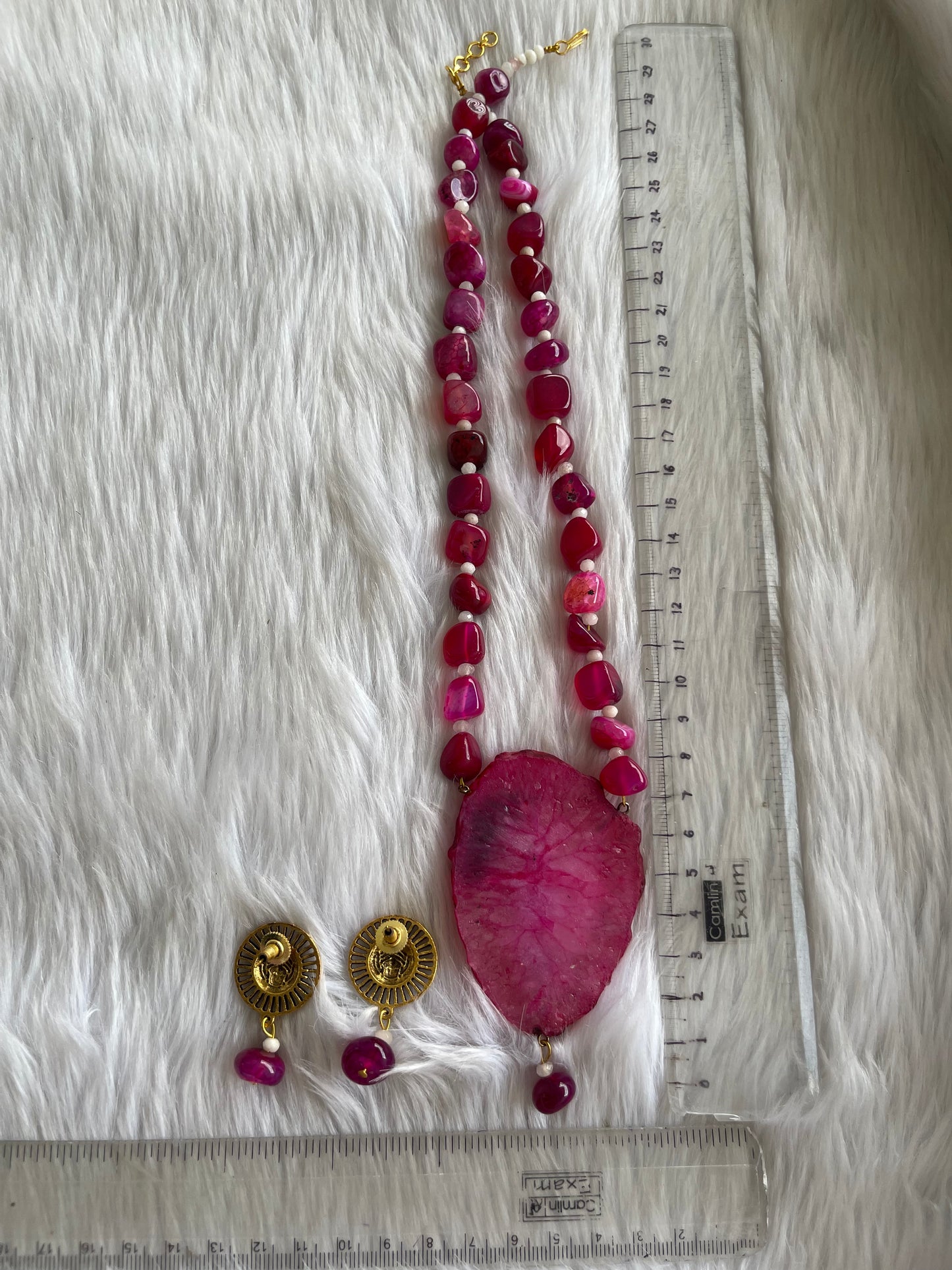 Antique pink Onyx beaded Hand painted agate pendant necklace set dj-42544