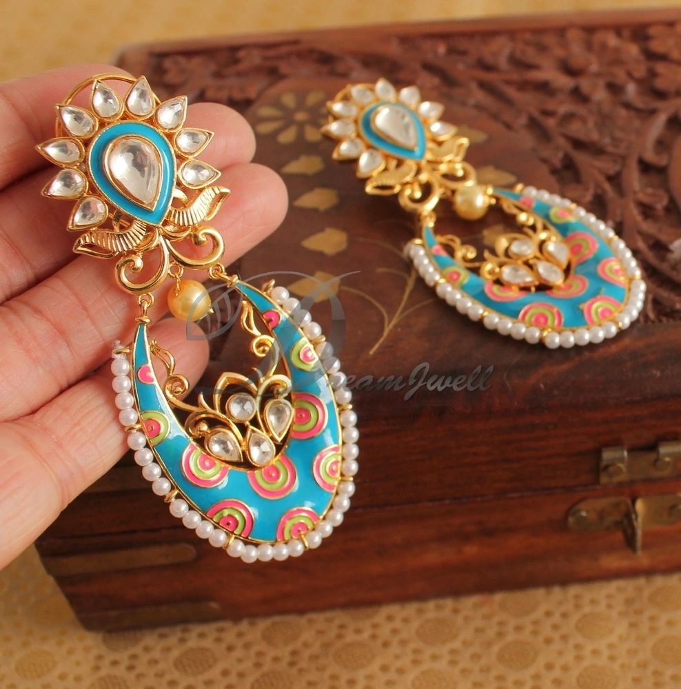 Antique Blue Meenakari Kundan earrings-dj16057