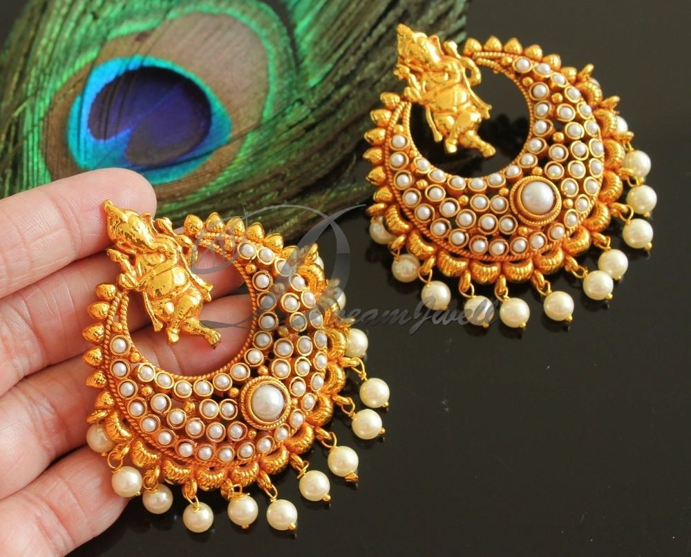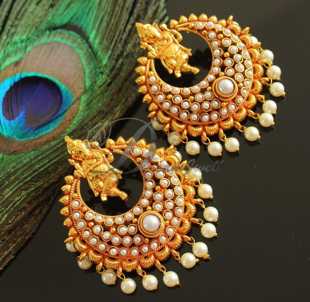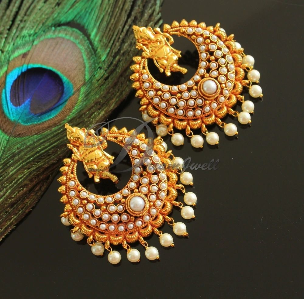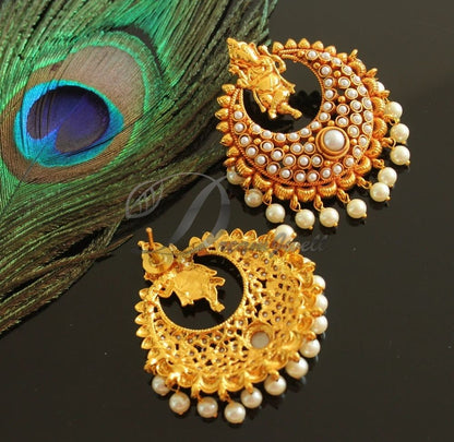 Antique gold tone Pearl Ganesha Bali Earrings -dj16547